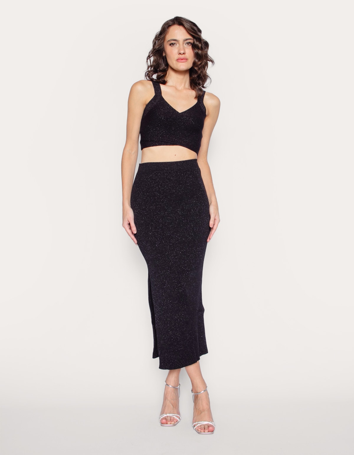 Saia midi tricot lurex