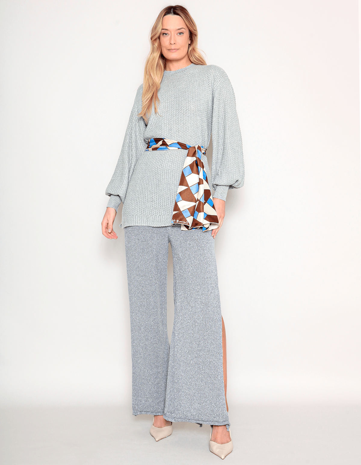 Blusão suéter tricot é aquele básico diferenciado que você vai querer usar de segunda a segunda. com comprimento alongado, silhueta oversized, gola redonda e mangas longas bufantes. perfeito para arrasar no inverno com muito estilo.