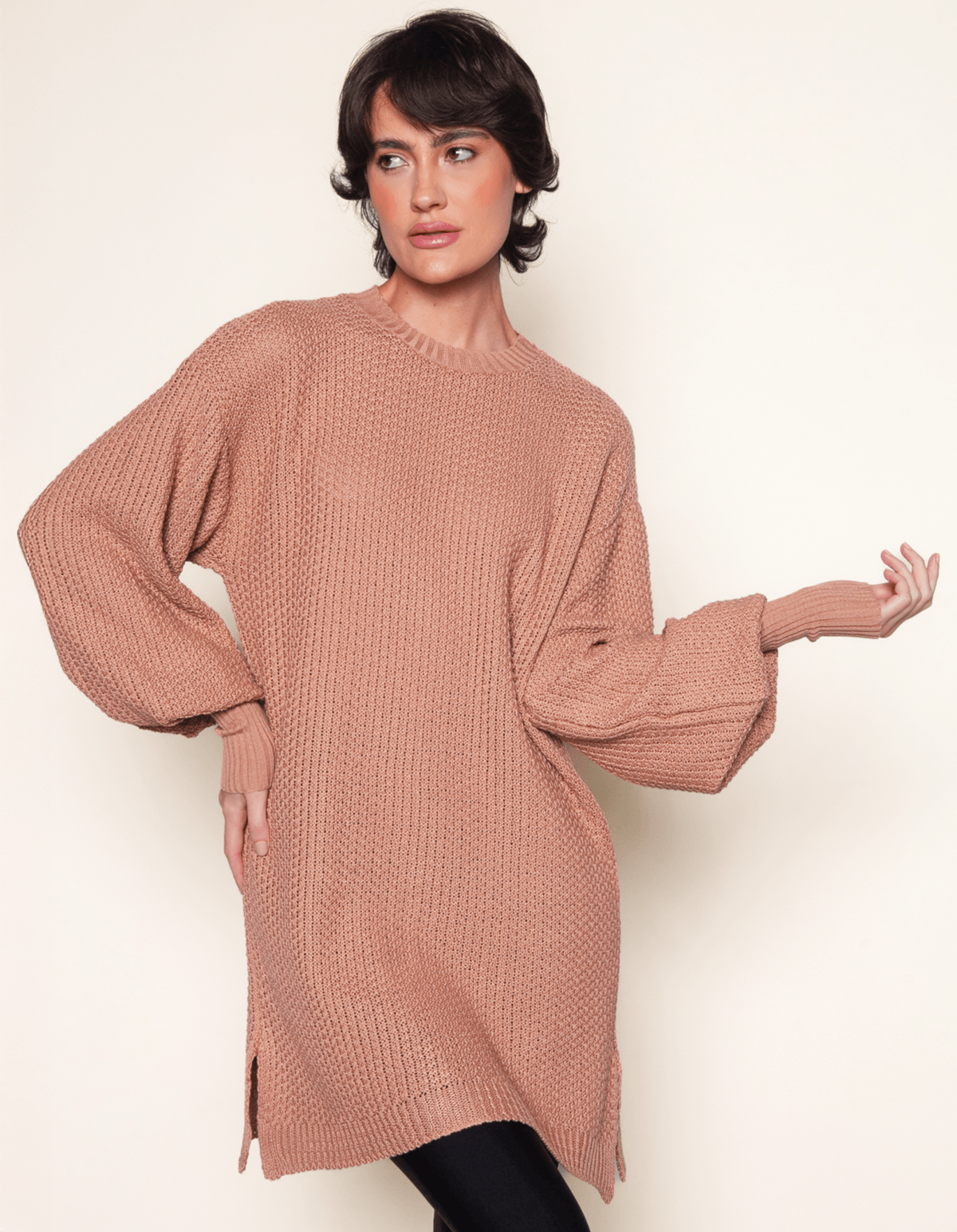 Blusão suéter tricot é aquele básico diferenciado que você vai querer usar de segunda a segunda. com comprimento alongado, silhueta oversized, gola redonda e mangas longas bufantes. perfeito para arrasar no inverno com muito estilo.