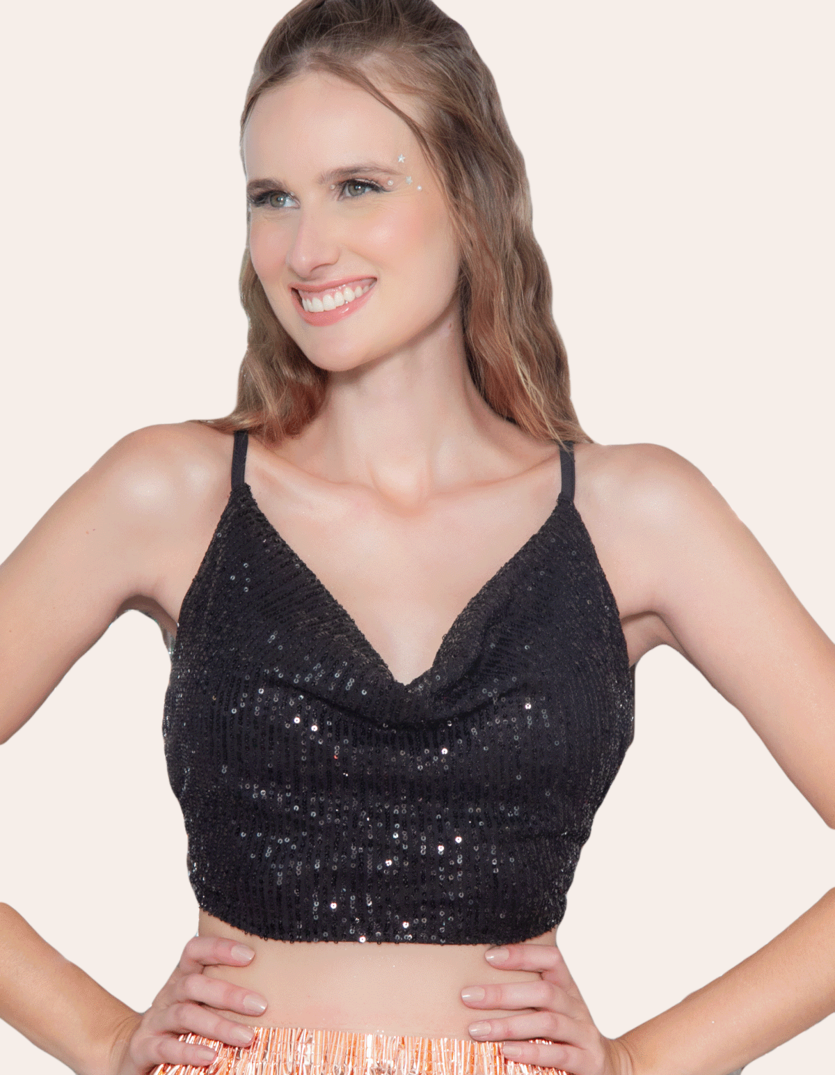 Cropped em paete com bojo, possui tira para amarrar no pescoço e costas. para você que não gosta de passar despercebida e curte um glow no look.
