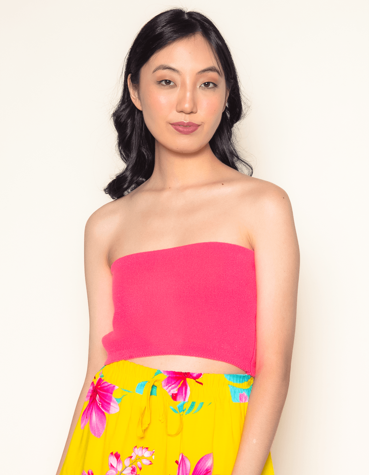 Top faixa tricot Rosa chiclete