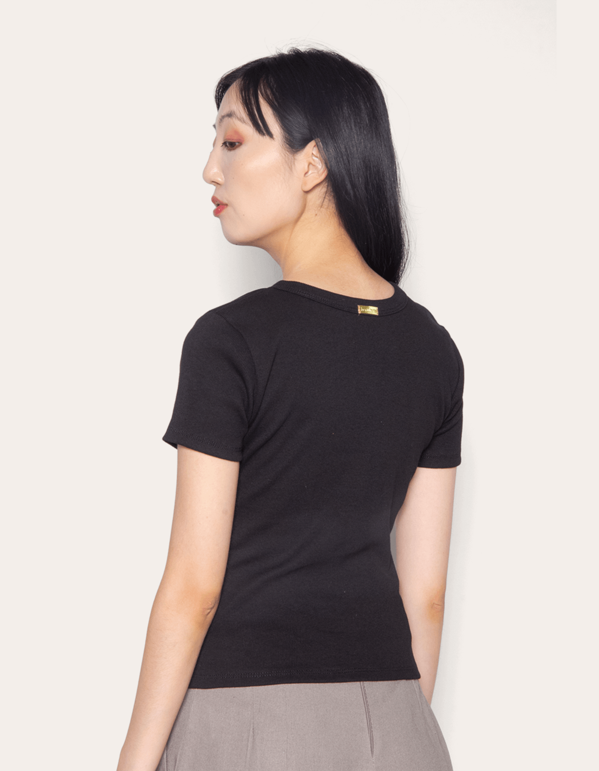 Blusa em malha canelada manga curta, decote redondo e caimento justo ao corpo. descubra a combinação perfeita entre estilo e conforto com nossa tshirt básica canelada, ideal para mulheres que valorizam peças atemporais e versáteis no guarda-roupa.