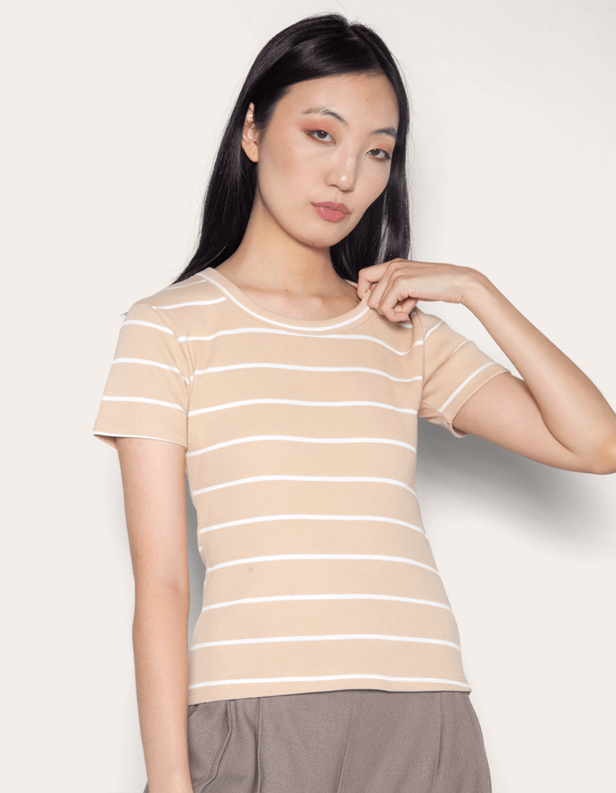 Uma peça que exala elegância e conforto, feita em um tecido canelado, essa blusa oferece uma modelagem ajustada que abraça a silhueta de maneira sofisticada, com o padrão listrado confere um visual moderno e atemporal, permitindo diversas combinações e estilos, conta com as mangas curtas e gola redonda. ideal para criar looks versáteis, ela pode ser facilmente combinada com jeans para um visual casual ou com uma saia para uma produção mais elaborada.