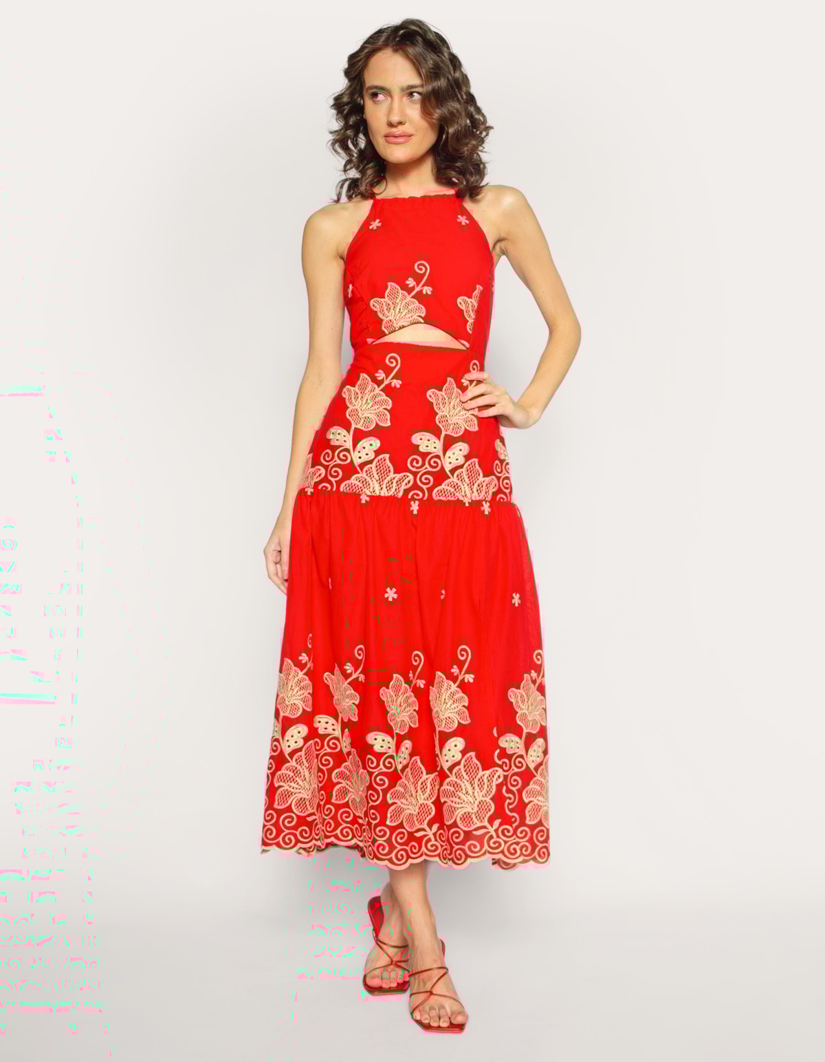 Vestido Aurora Bordado Vermelho