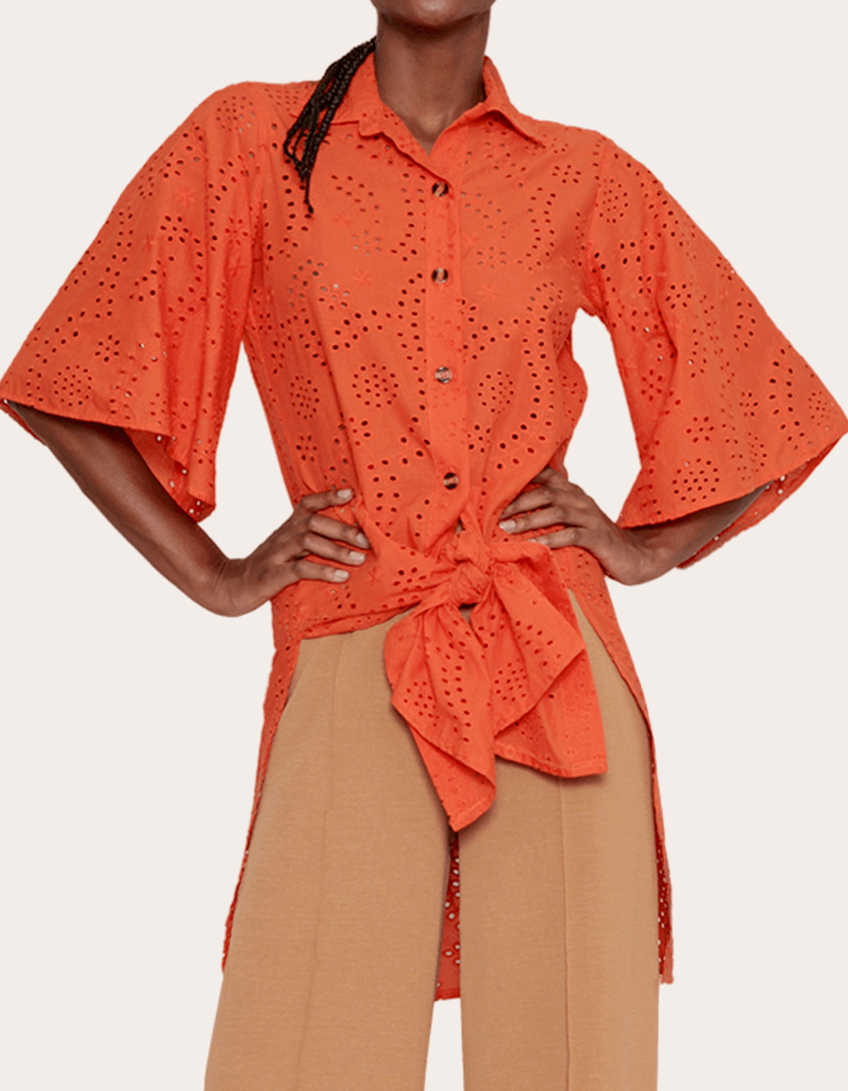 Apresentamos o encantador vestido curto branco estilo chemise, uma fusão de elegância e descontração. com botões frontais que lembram uma camisa, suas mangas curtas com efeito godê adicionam um toque de charme. feito em delicada laise de algodão, o tecido bordado com efeito vazado cria um visual deslumbrante. uma escolha perfeita para diversas ocasiões, este vestido combina estilo e conforto de maneira única, tornando-o uma peça essencial no guarda-roupa da mulher moderna.