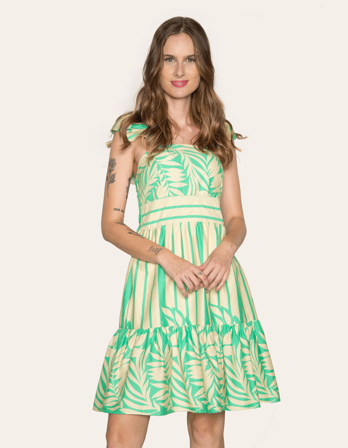 Vestido curto estampado. alças com babado, possui bojo e lastex nas costas. perfeito para os dias quentes, os vestidos curtos são as peças prediletas para quem não abre mão do conforto e versatilidade. com ele, tudo o que você precisa é soltar a criatividade, montar seu look e sair arrasando por aí.
