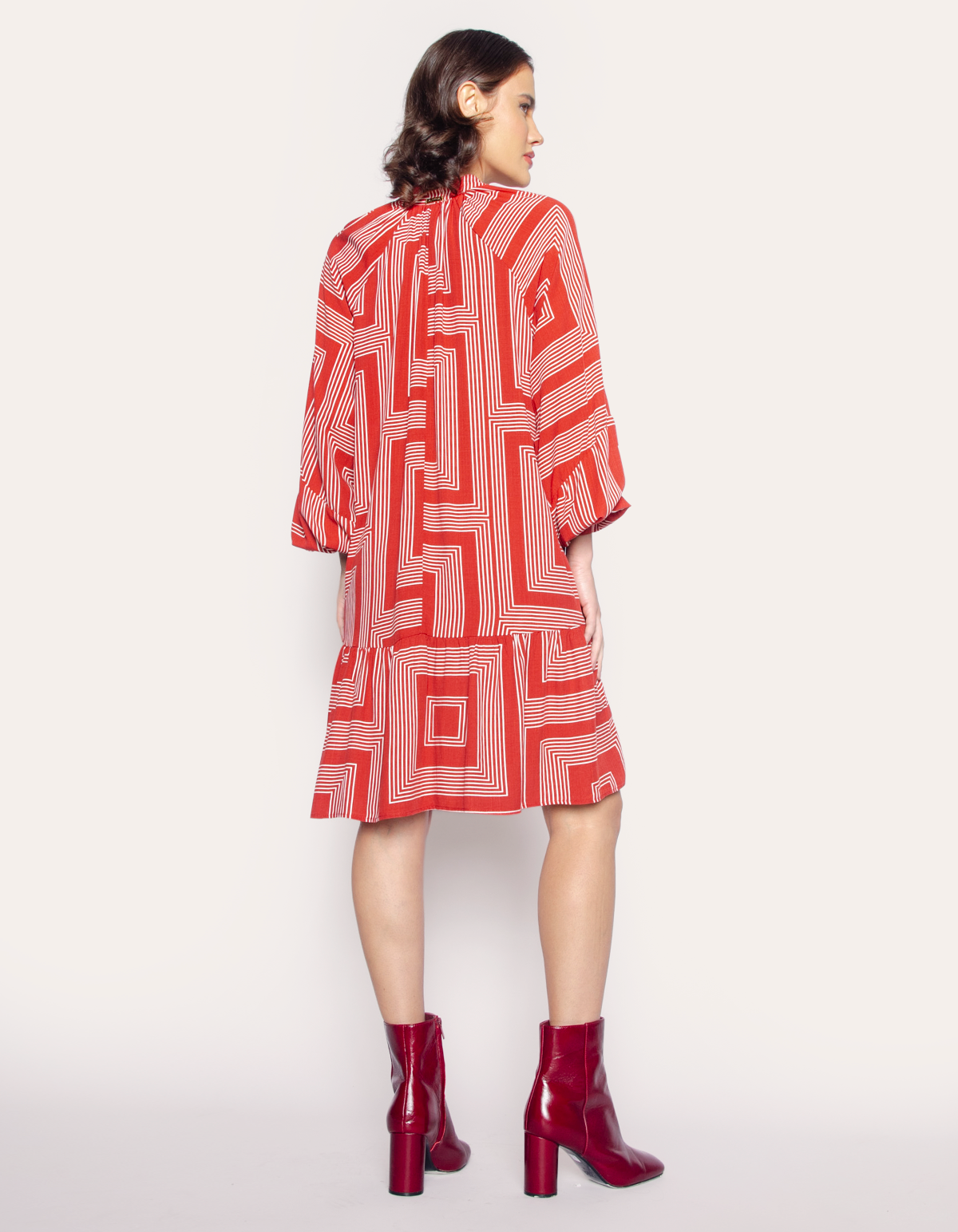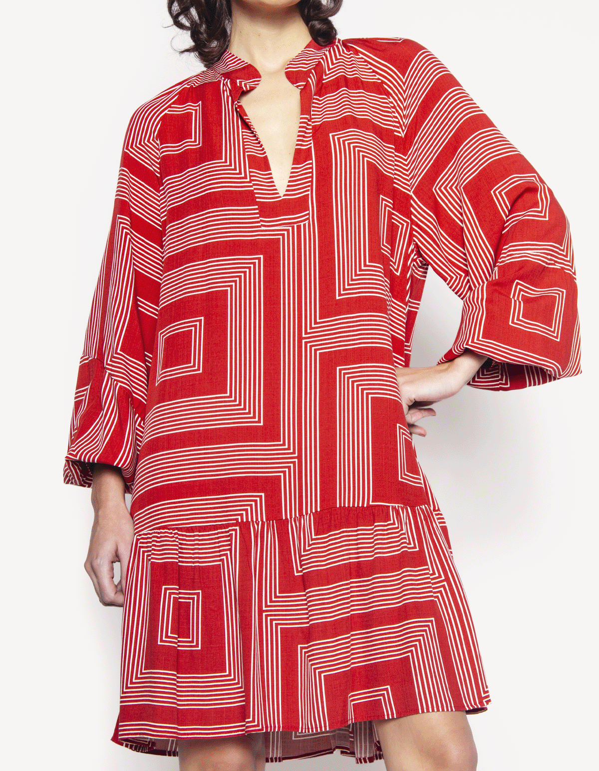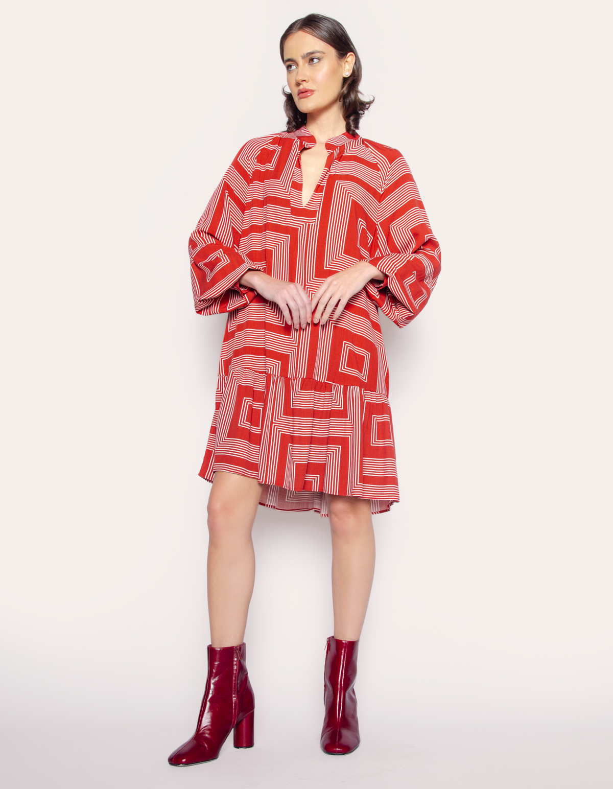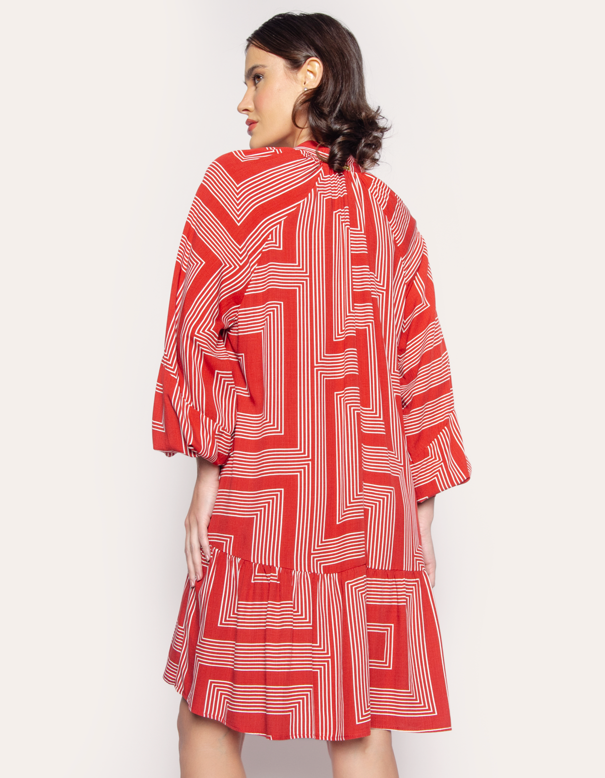 Vestido curto, manga longa, modelagem ampla e decote v. Uma peça linda, atemporal e extremamente confortável!