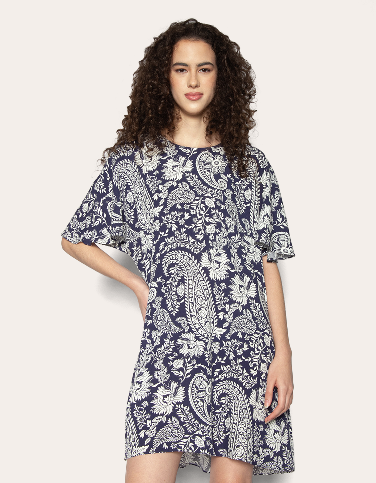 Vestido curto, manga curta, possui modelagem ampla. peça atemporal, que te veste bem em qualquer ocasião!