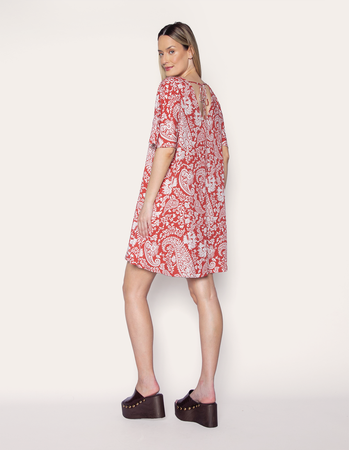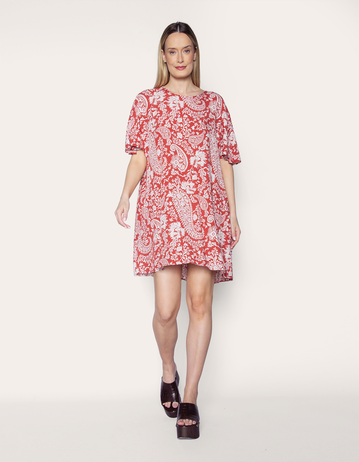 Vestido curto, manga curta, possui modelagem ampla. peça atemporal, que te veste bem em qualquer ocasião!