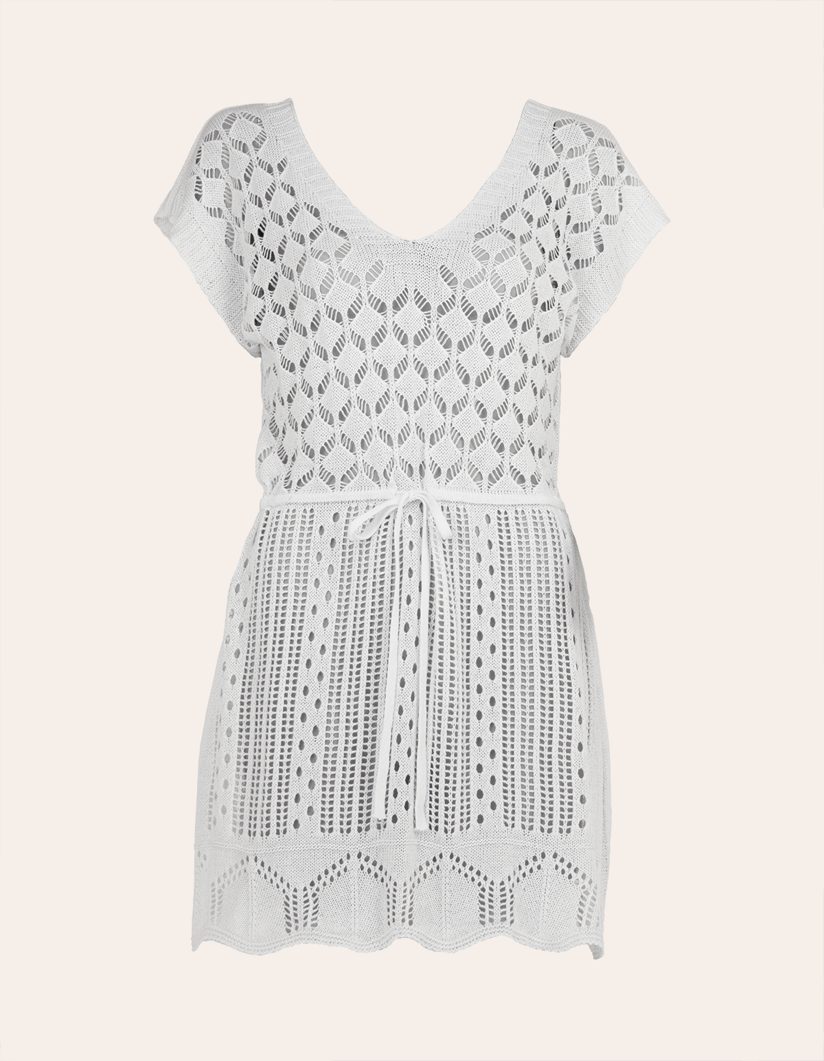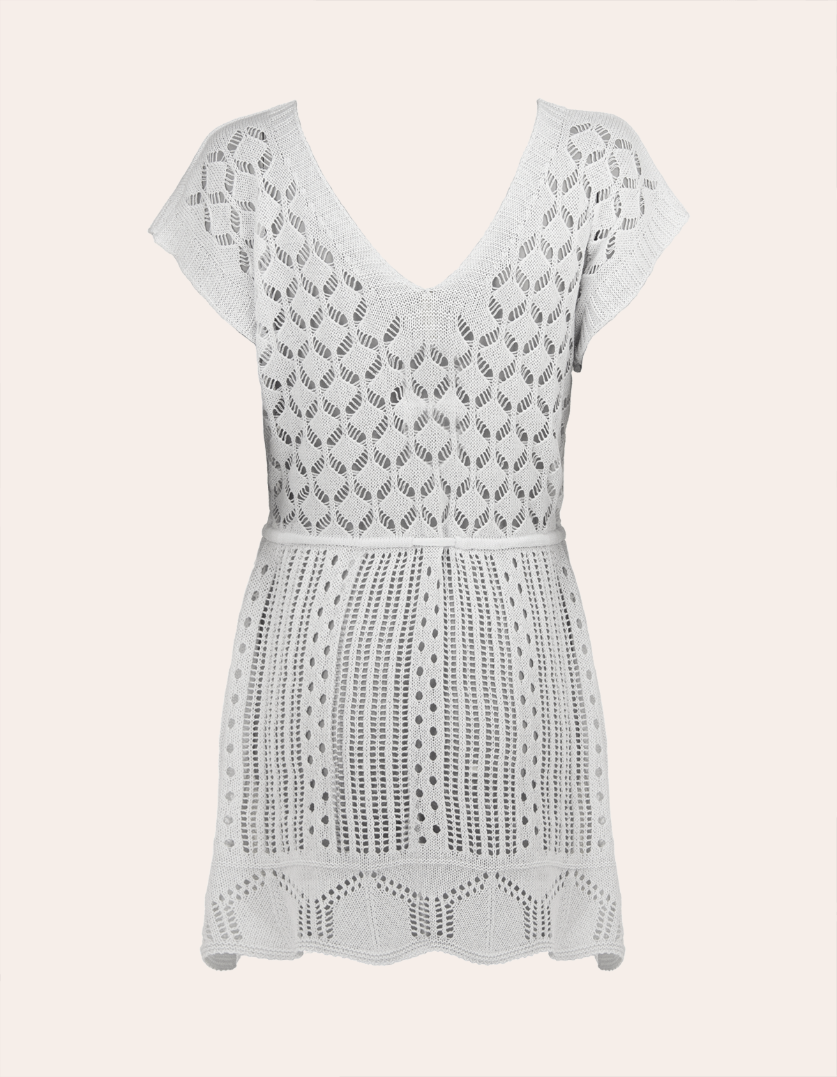 Vestido curto em crochê, manga cavada e ajuste na cintura. essa técnica handmade mostrou ao que vinha já em semanas de moda dessa temporada e, agora, está aparecendo nos looks de dia a dia.