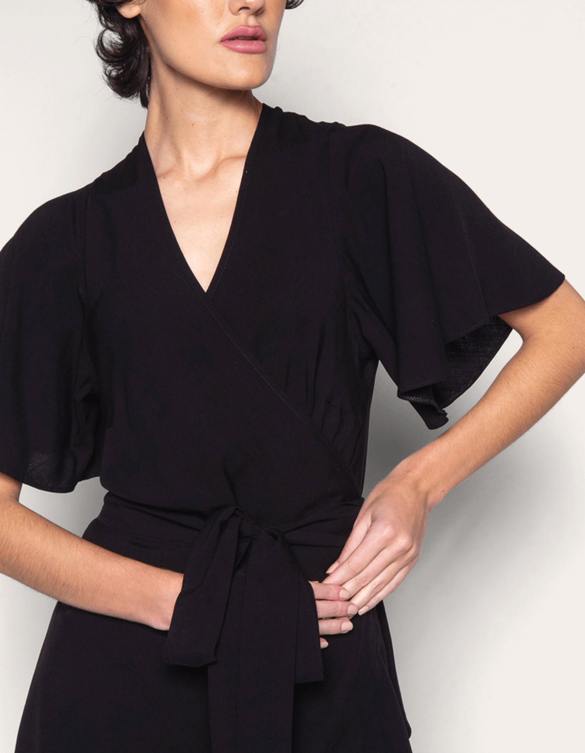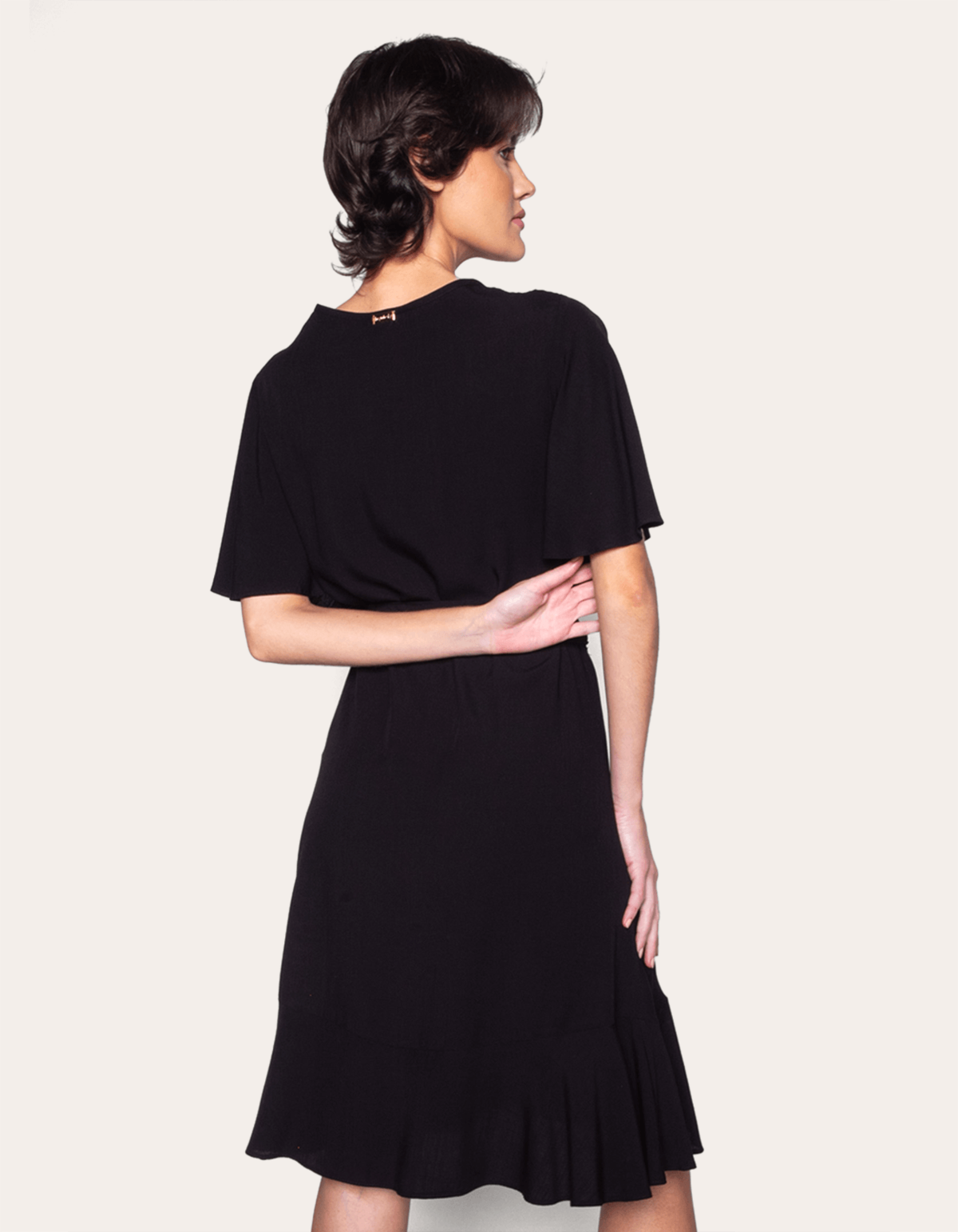 Vestido curto transpassado liso com manga soltinha. fica lindo no corpo, perfeito para um look mais romântico.