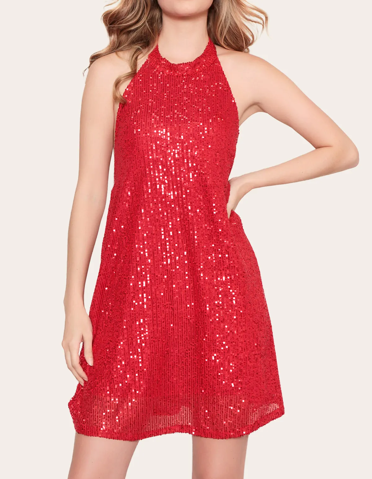 Vestido curto frente única paête Vermelho