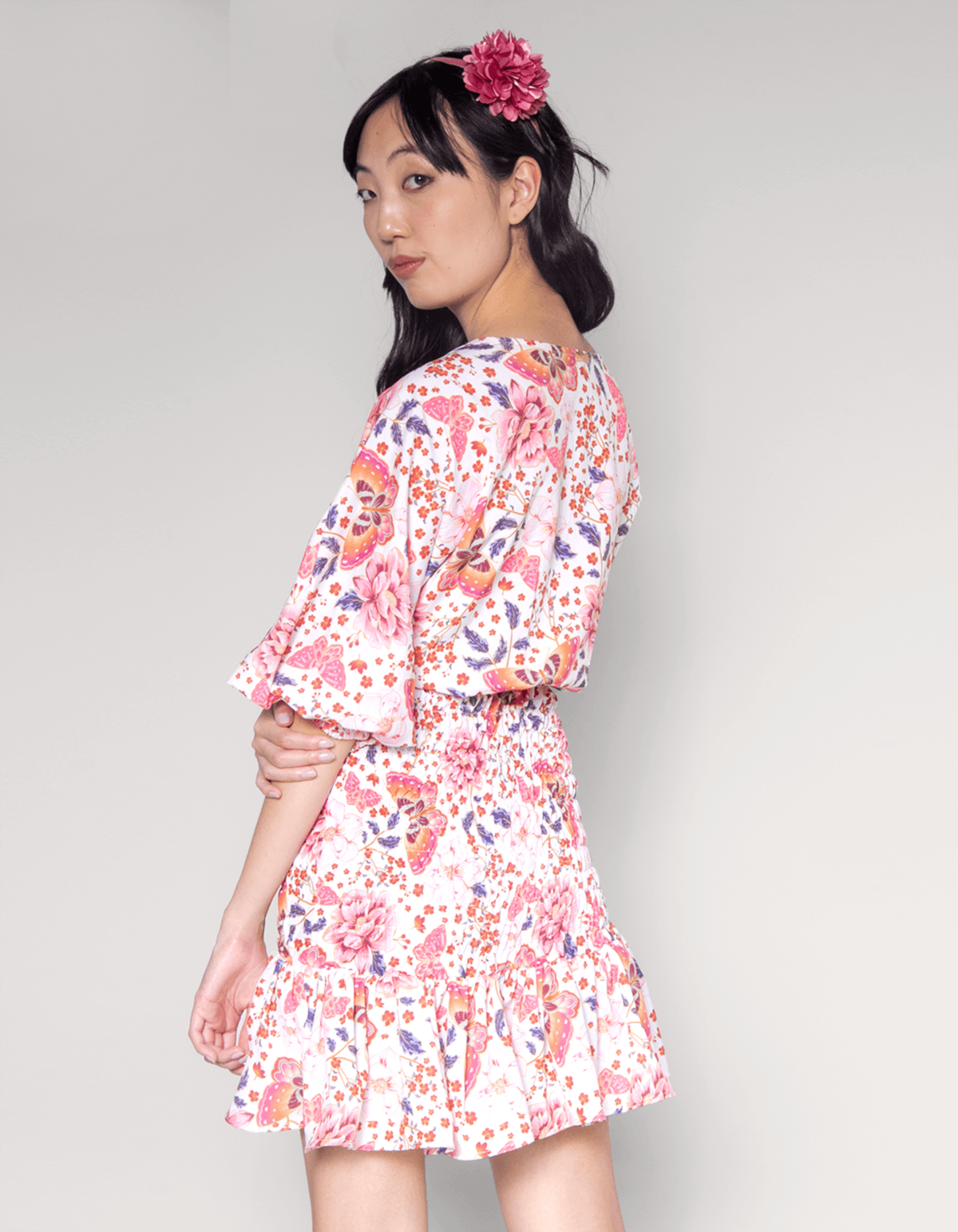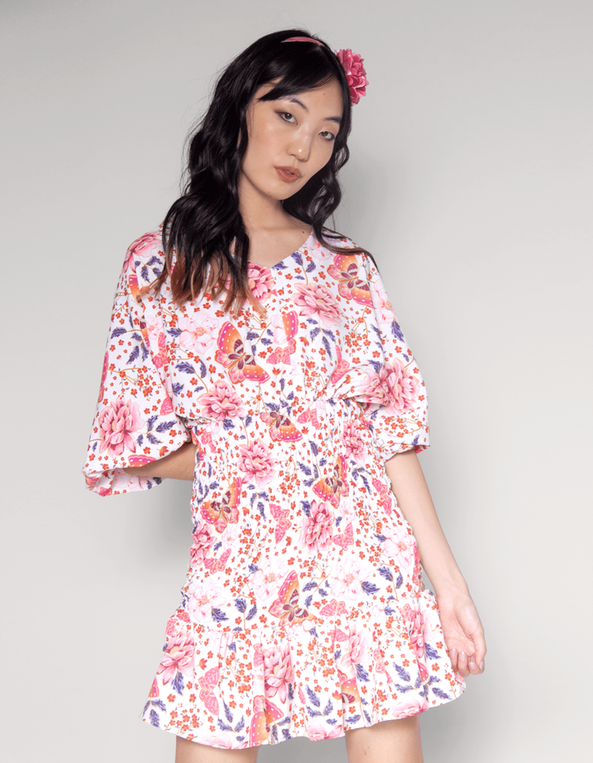 Vestido curto, manga longa com acabamento em elástico no punho, lastex na parte da cintura e quadril. leve babado na barra. elegante, confortável é perfeito para aquelas mulheres que não abrem mão de se vestir bem.