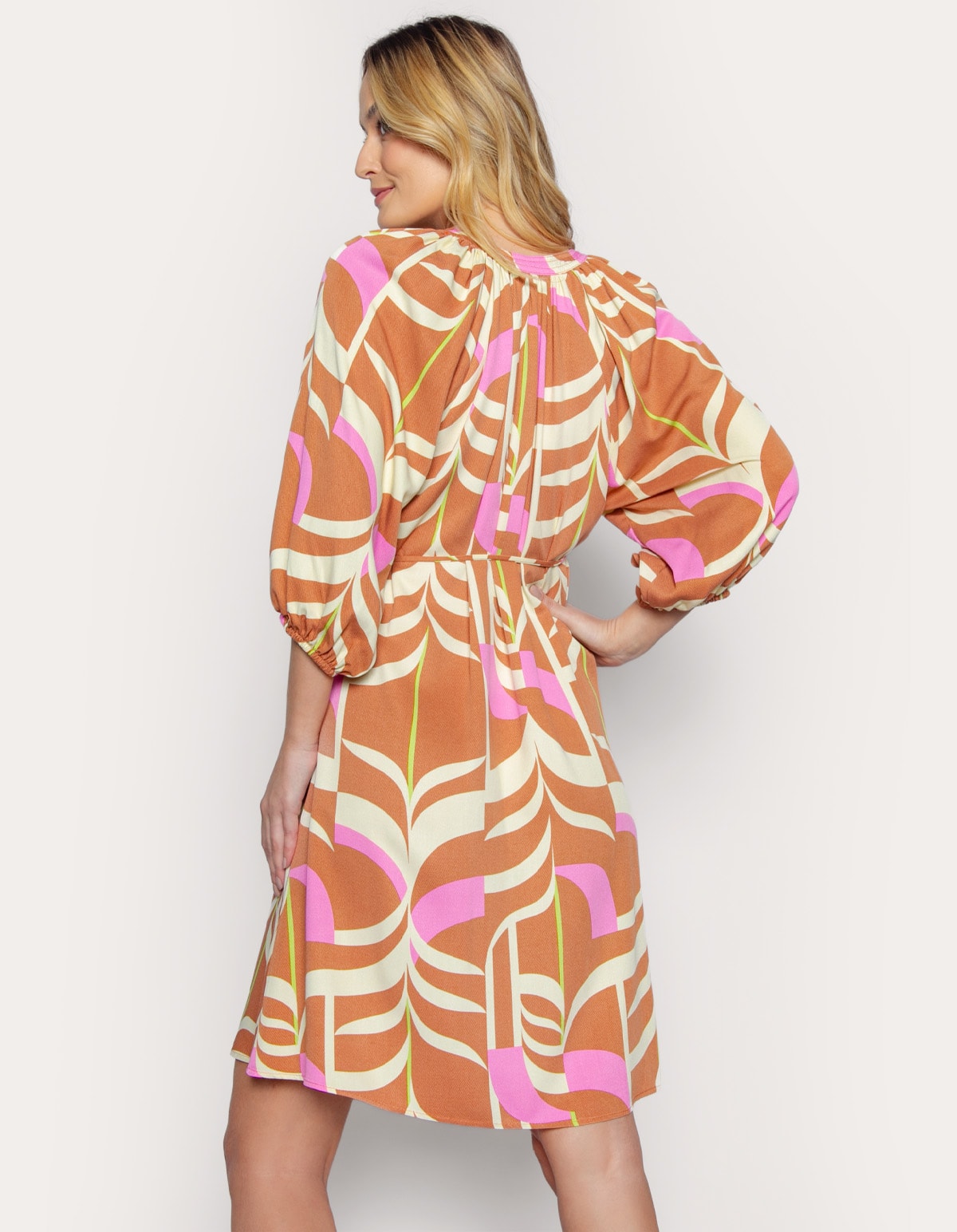 Vestido detalhe amarracao no descote estampado