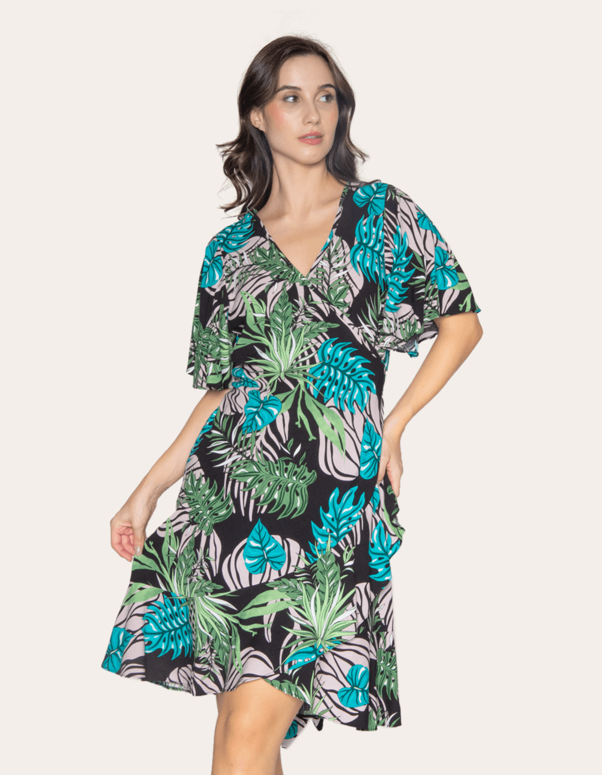 Apresentamos o adorável vestido curto transpassado estampado, uma peça que exala charme e conforto. com mangas soltinhas, ele envolve o corpo de maneira encantadora, oferecendo um caimento perfeito. ideal para um look romântico e delicado, este vestido transpassado combina estampa cativante com design elegante, tornando-o uma escolha excepcional para diversas ocasiões. seja você mesma, seja encantadora.