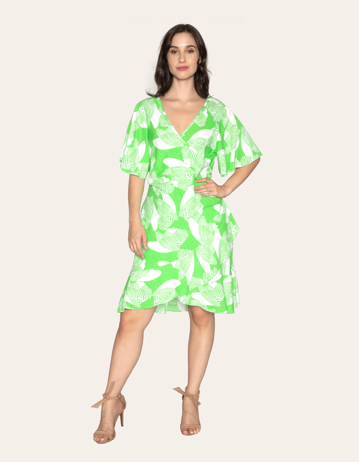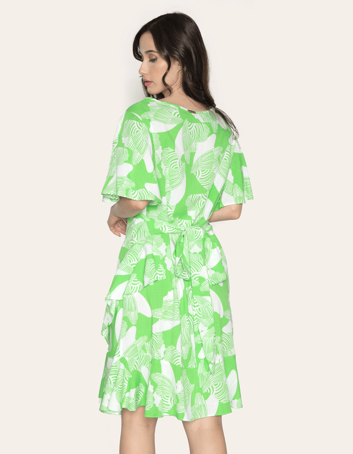 Apresentamos o adorável vestido curto transpassado estampado, uma peça que exala charme e conforto. com mangas soltinhas, ele envolve o corpo de maneira encantadora, oferecendo um caimento perfeito. ideal para um look romântico e delicado, este vestido transpassado combina estampa cativante com design elegante, tornando-o uma escolha excepcional para diversas ocasiões. seja você mesma, seja encantadora.