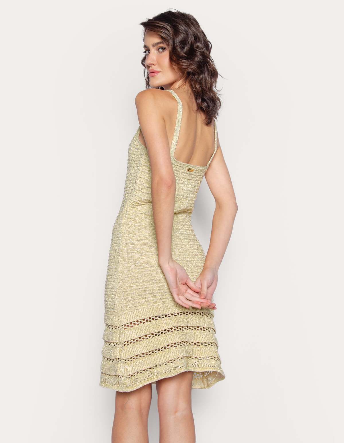 Vestido curto tricot lurex