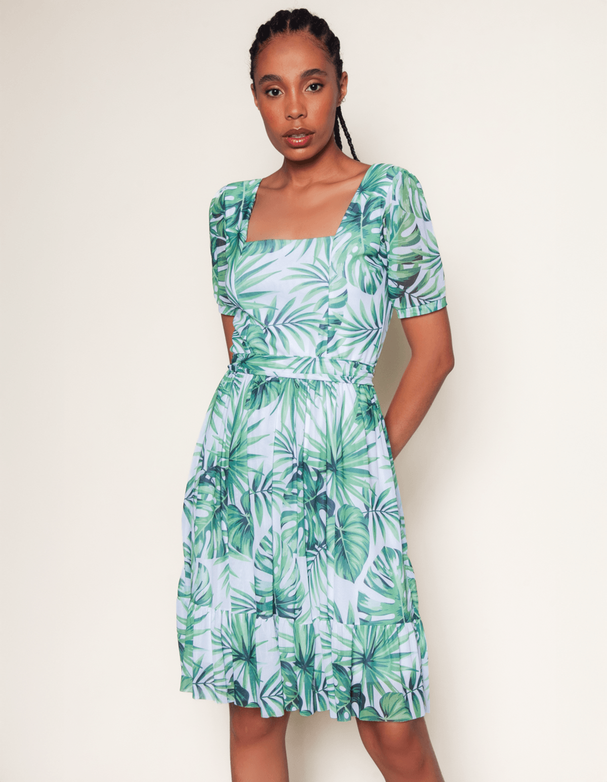 Vestido curto, manga curta, decote quadrado com faixa. acompanha faixa. é um verdadeiro trend-alert! uma peça super estilosa e que é a cara da estação.