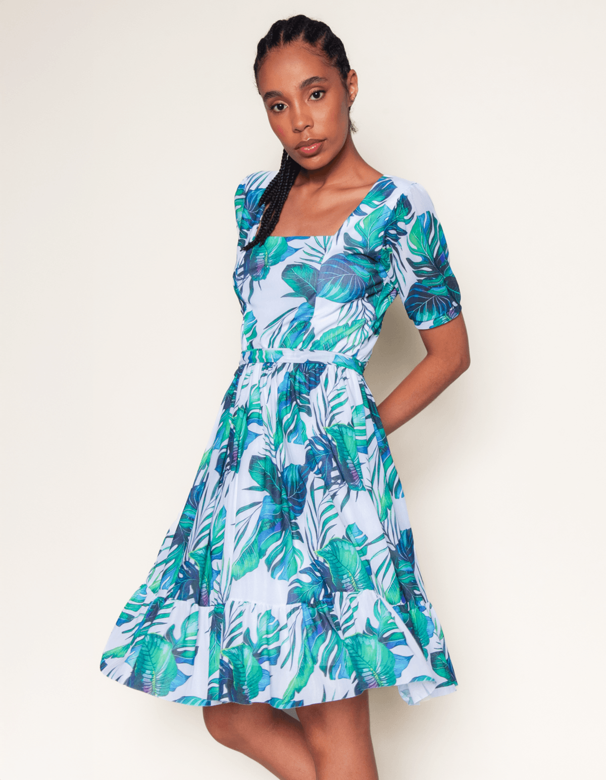 Vestido curto, manga curta, decote quadrado com faixa. acompanha faixa. é um verdadeiro trend-alert! uma peça super estilosa e que é a cara da estação.