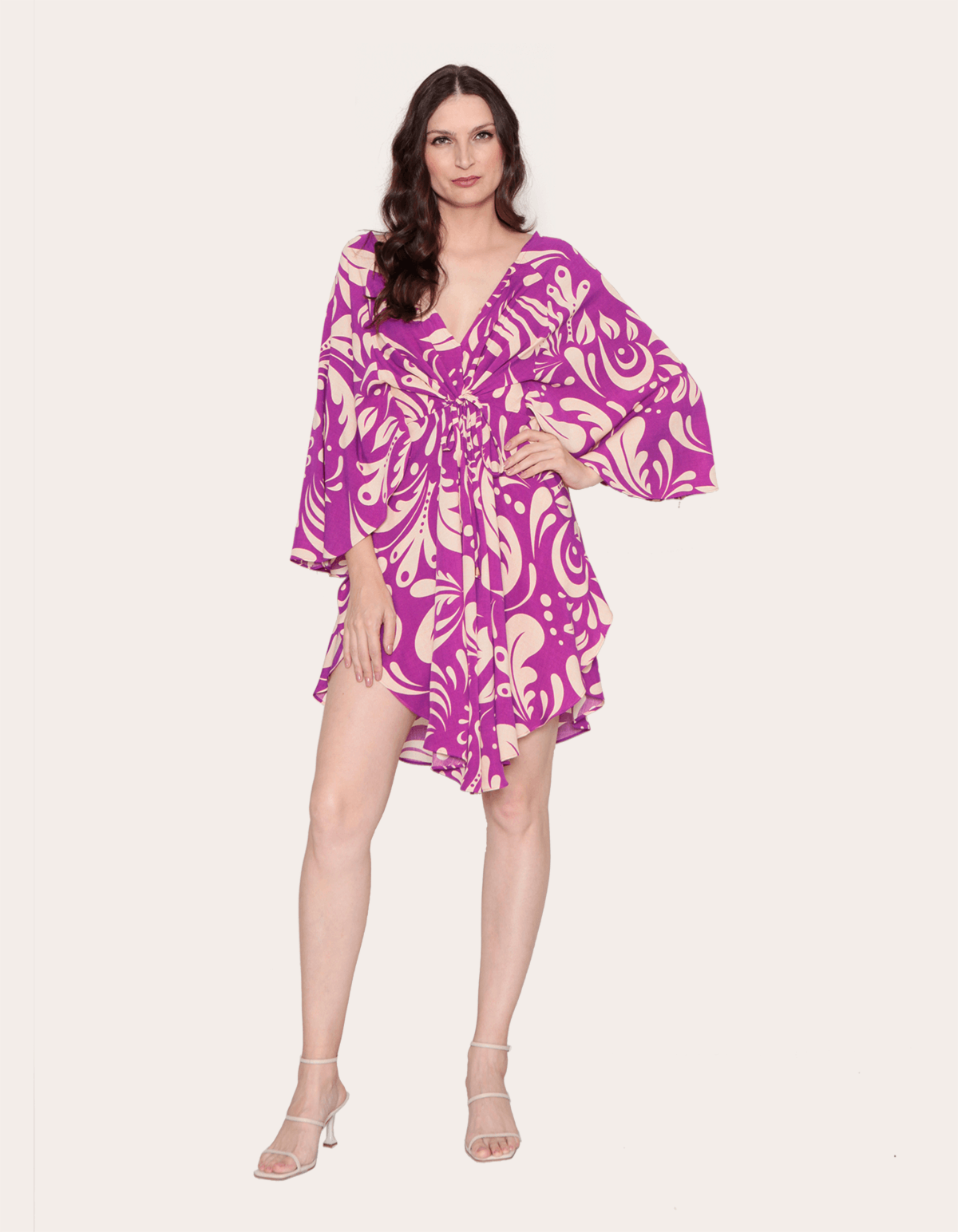 Vestido kaftan manga borboleta Fl arabesco fucsia