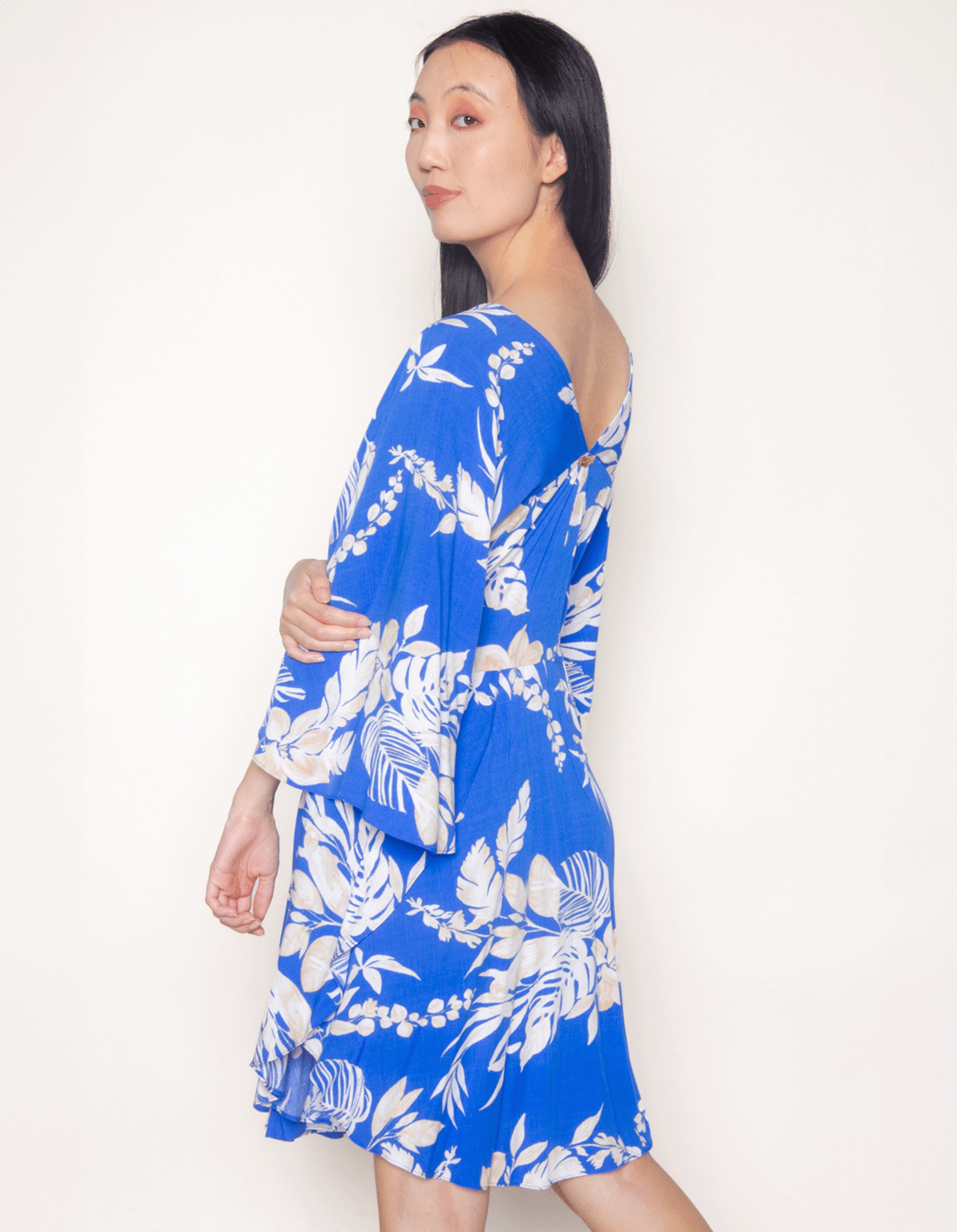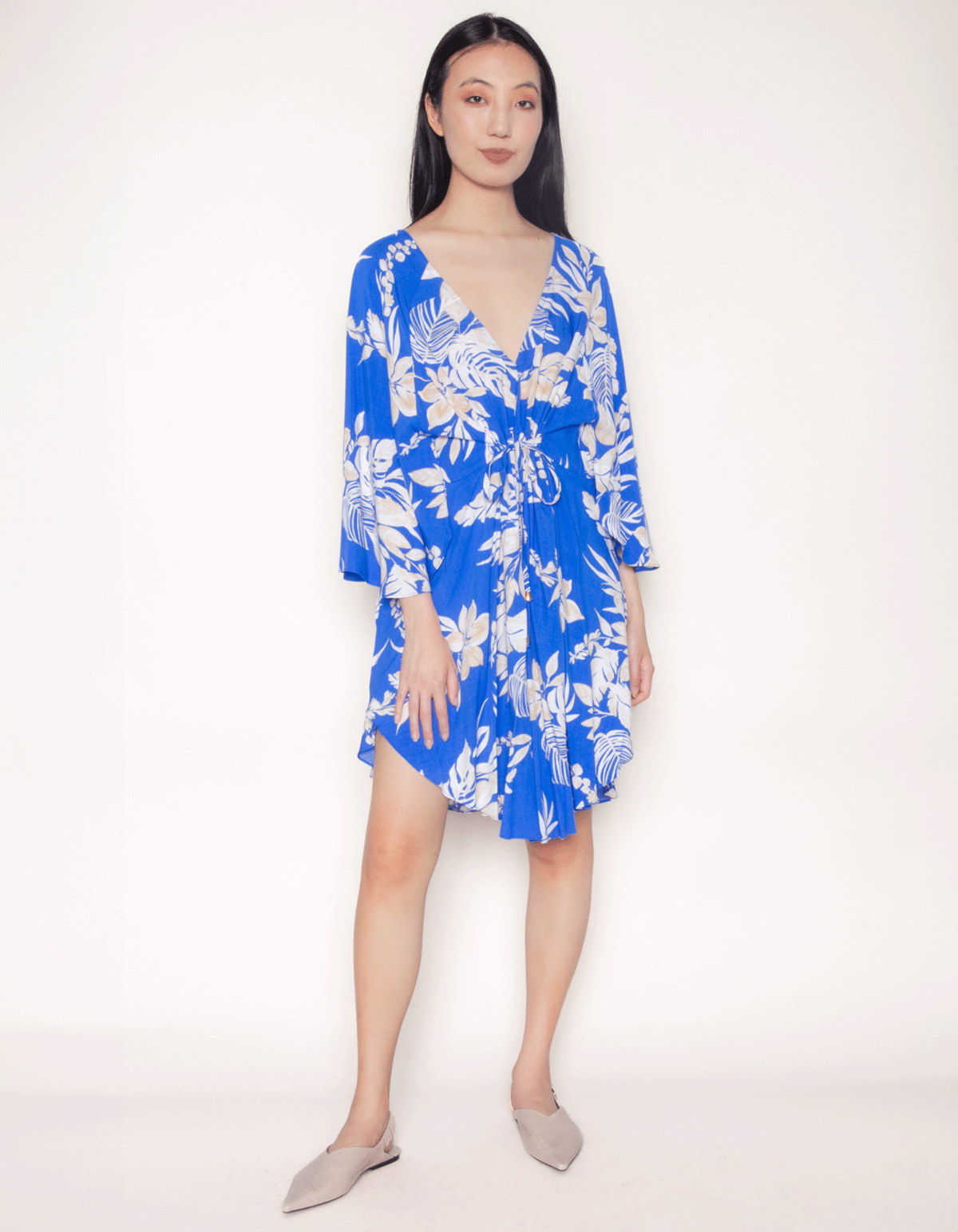 Vestido kaftan manga borboleta Fl azul
