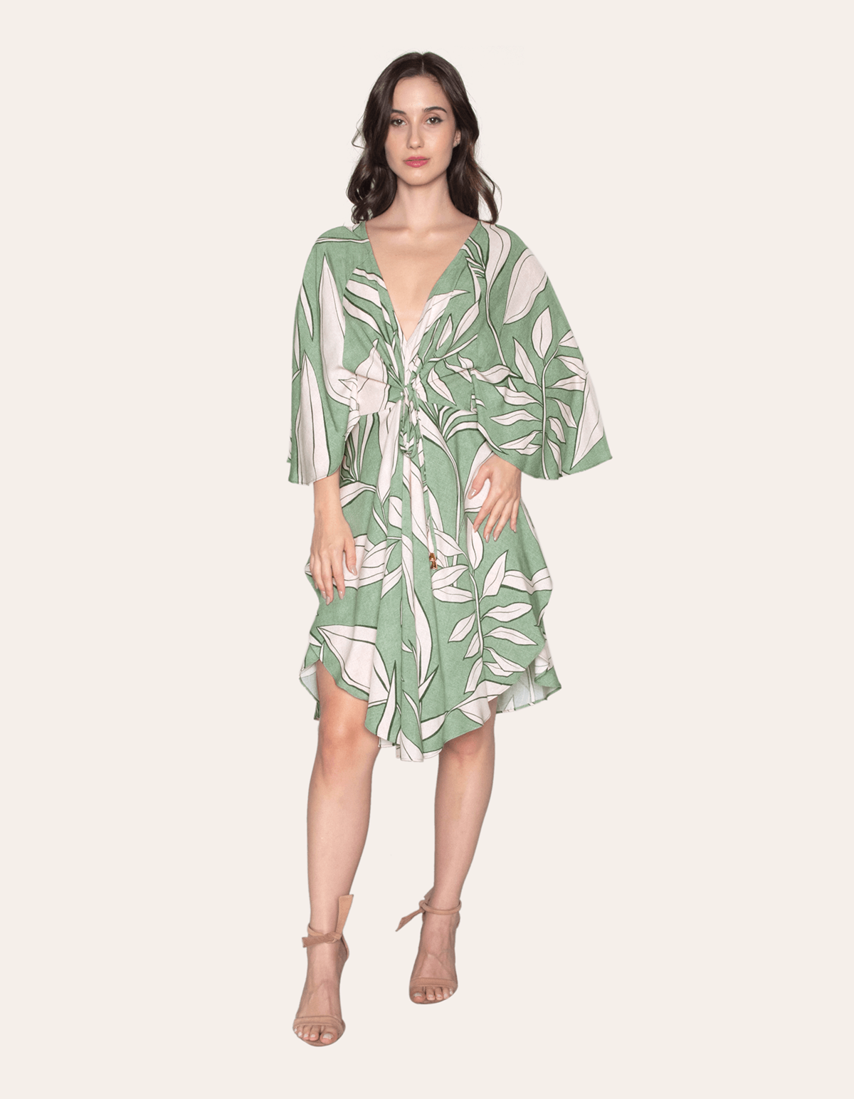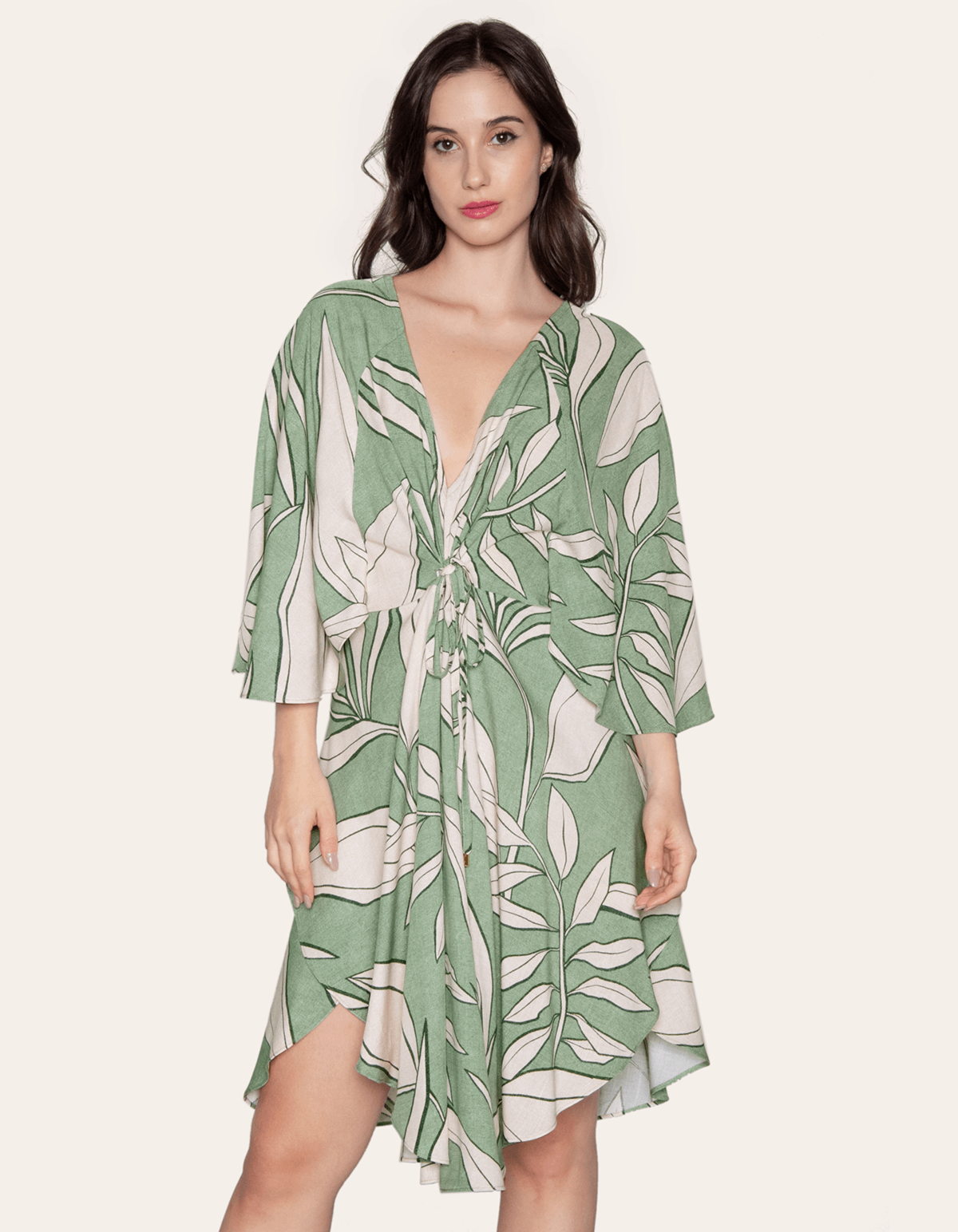 Vestido kaftan manga borboleta Galho mint