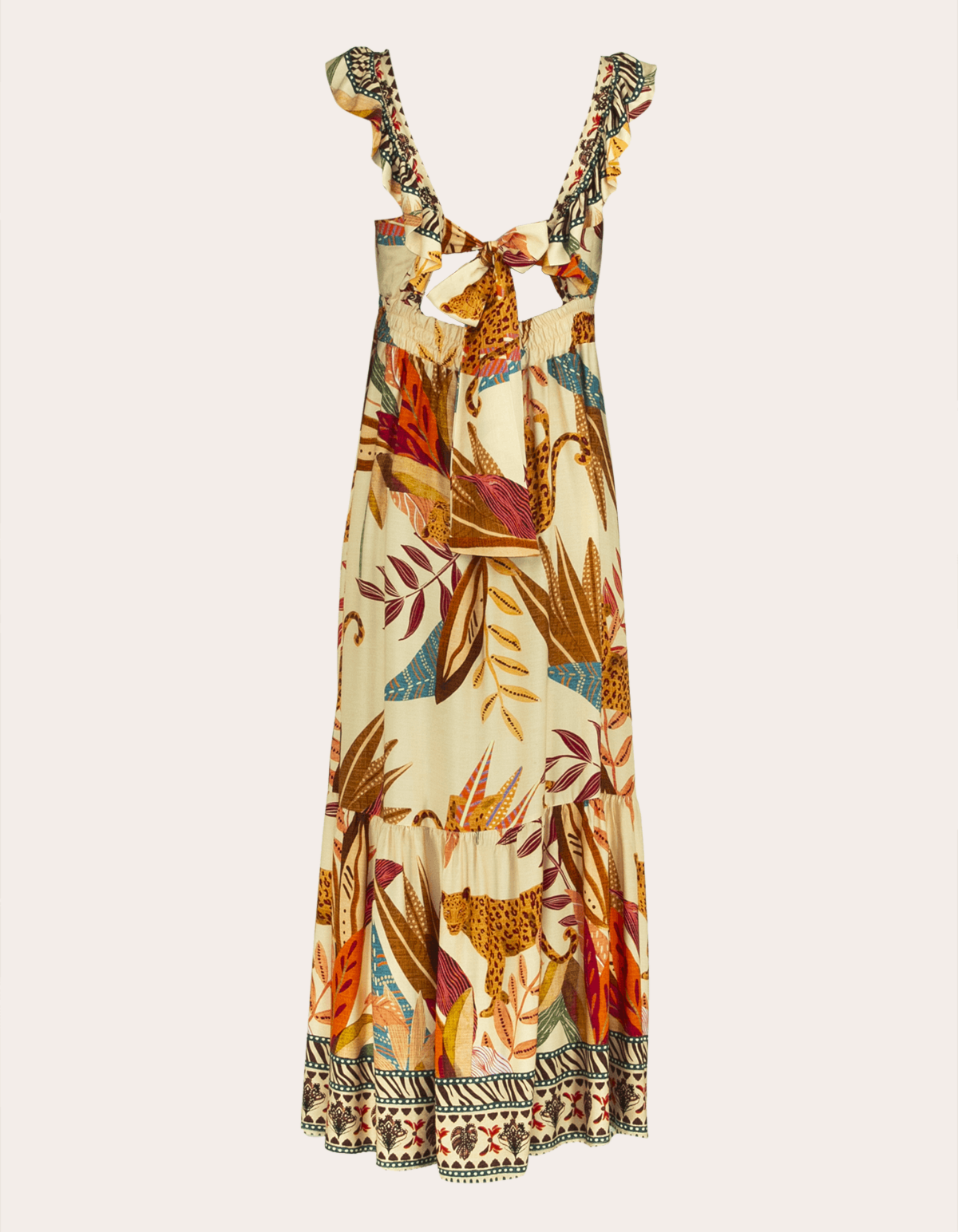 Vestido longo estampado, alça babado. uma opção charmosa e delicada para qualquer ocasião.