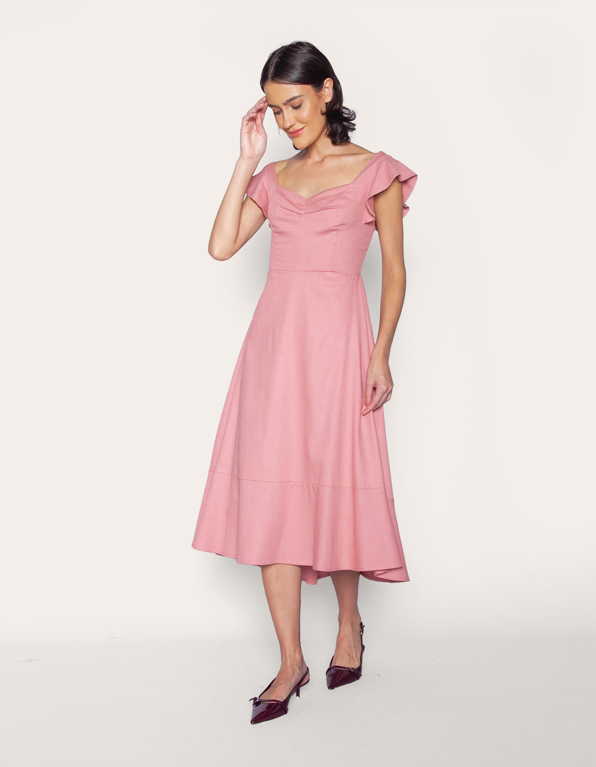 Vestido midi de viscolinho. o detalhe de babado nas alças trazem durabilidade e resistência à peça! ideal para eventos sociais, reuniões executivas ou mesmo um jantar romântico, este vestido garante que você se destaque pelo bom gosto e sofisticação.