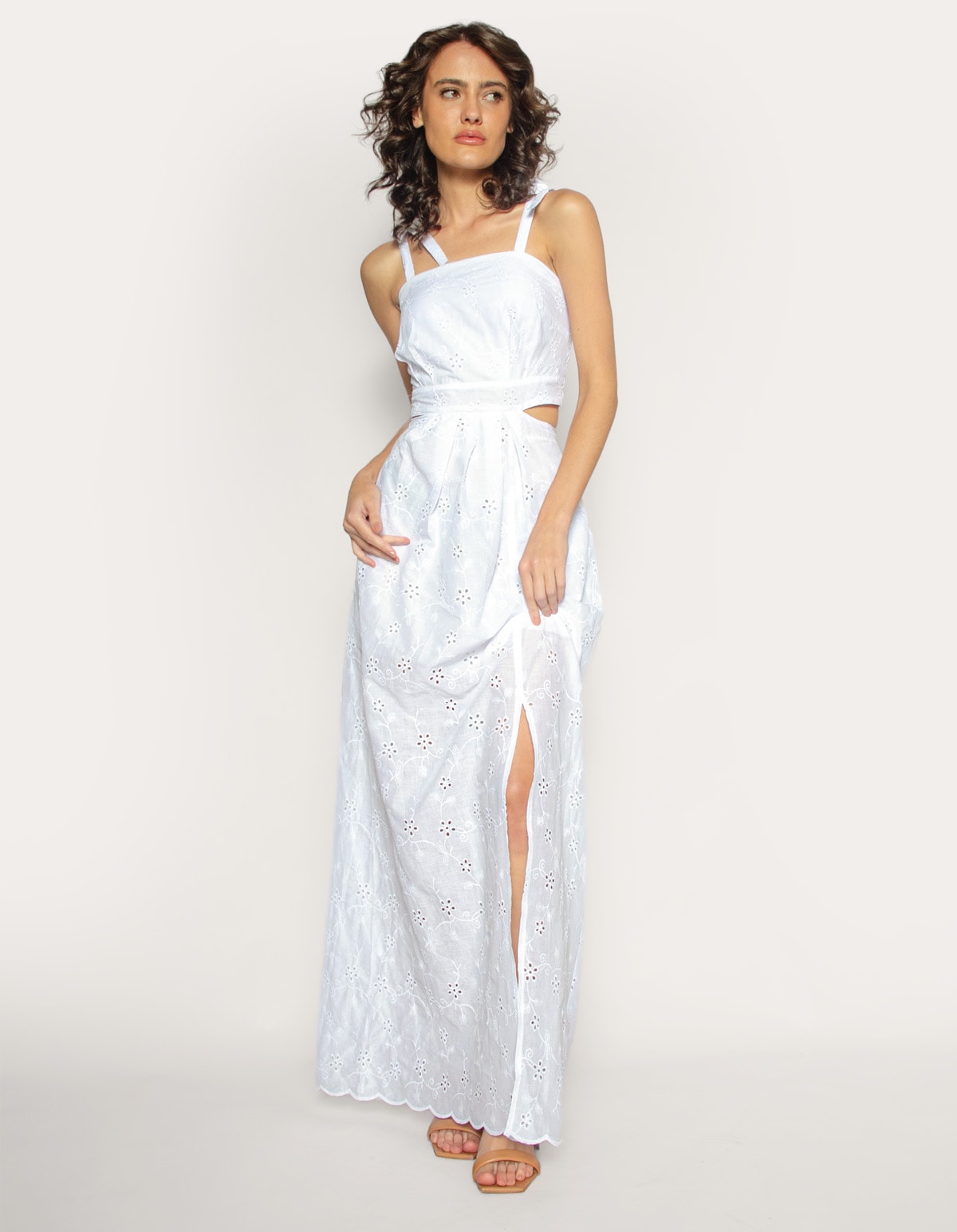 Vestido longo alça laço laise