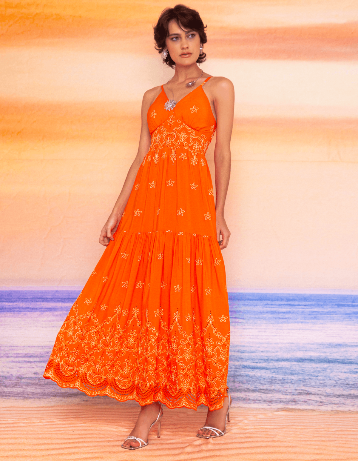 Vestido longo alcinha bordado