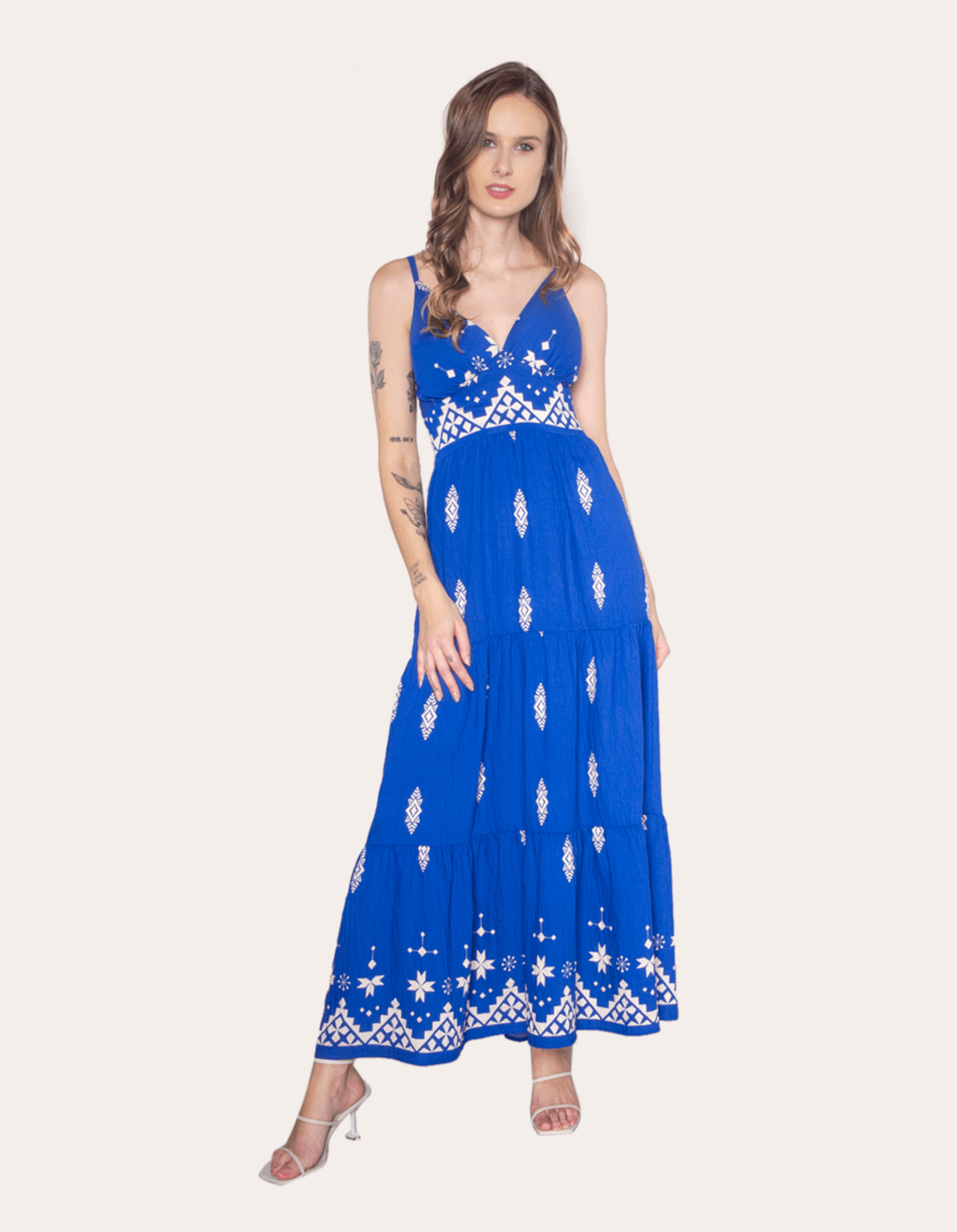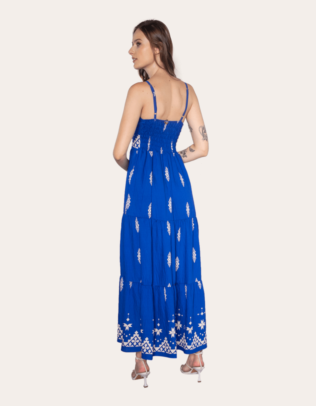 Encante-se com a leveza e o caimento perfeito do nosso vestido longo estampado. com alcinhas finas ajustáveis e bojo, este vestido valoriza o colo e define a cintura, proporcionando um ajuste impecável.