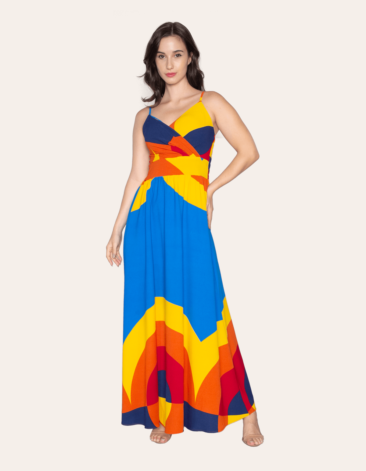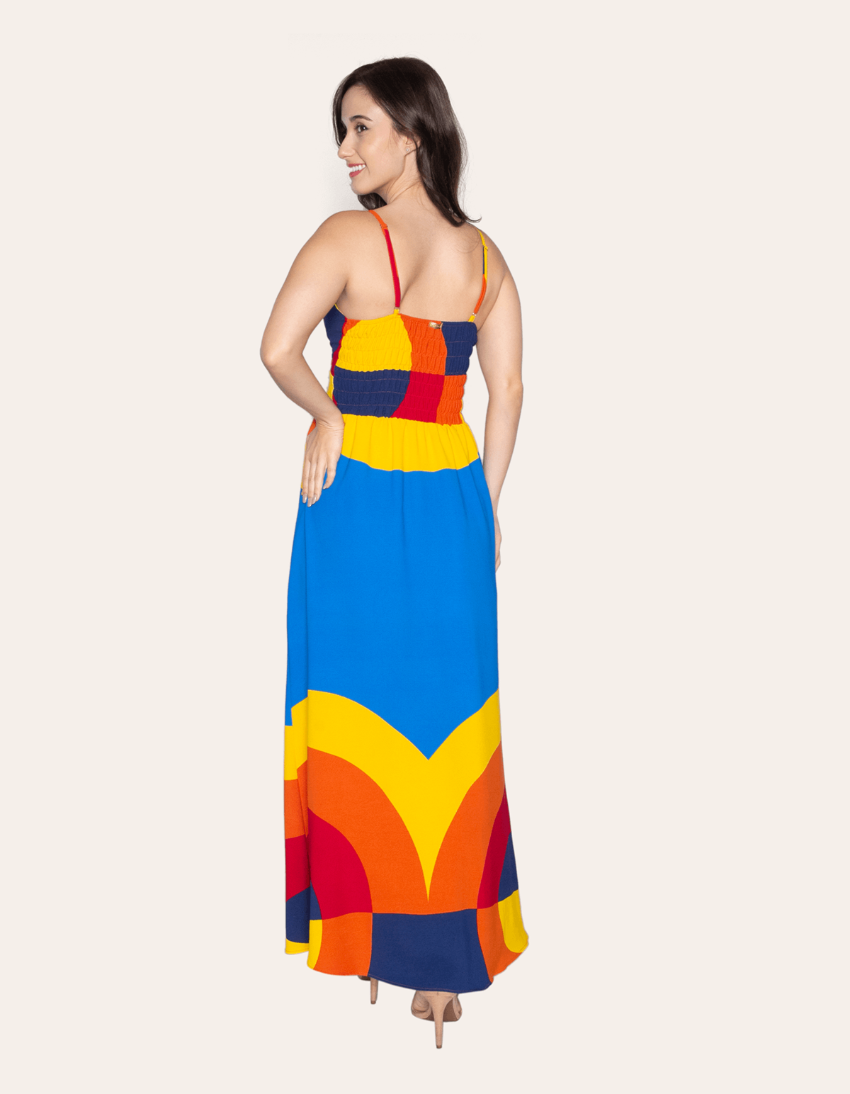 Vestido longo alcinha, decote transpassado e costas em lastex. com um design cuidadosamente elaborado, esse vestido se destaca não apenas pelo visual encantador, mas também pelo caimento impecável que valoriza a silhueta feminina.
