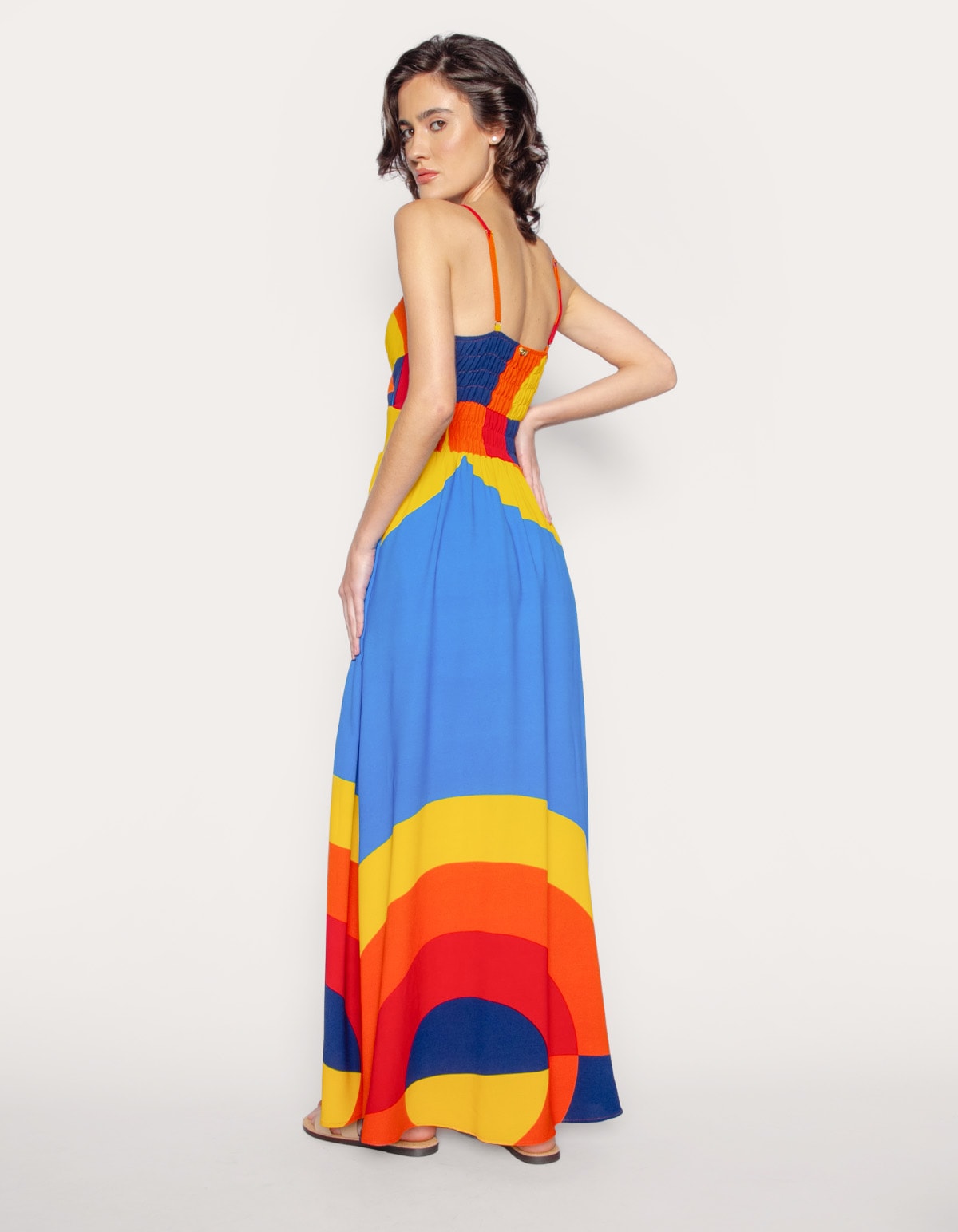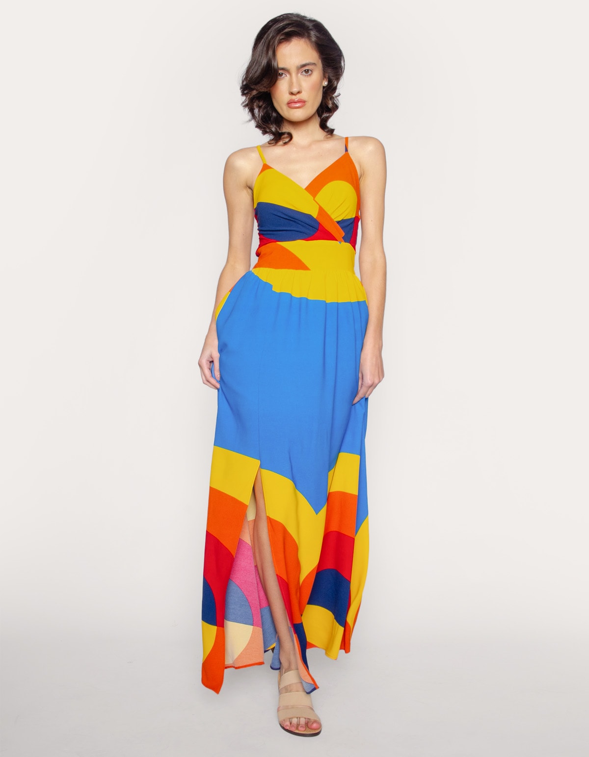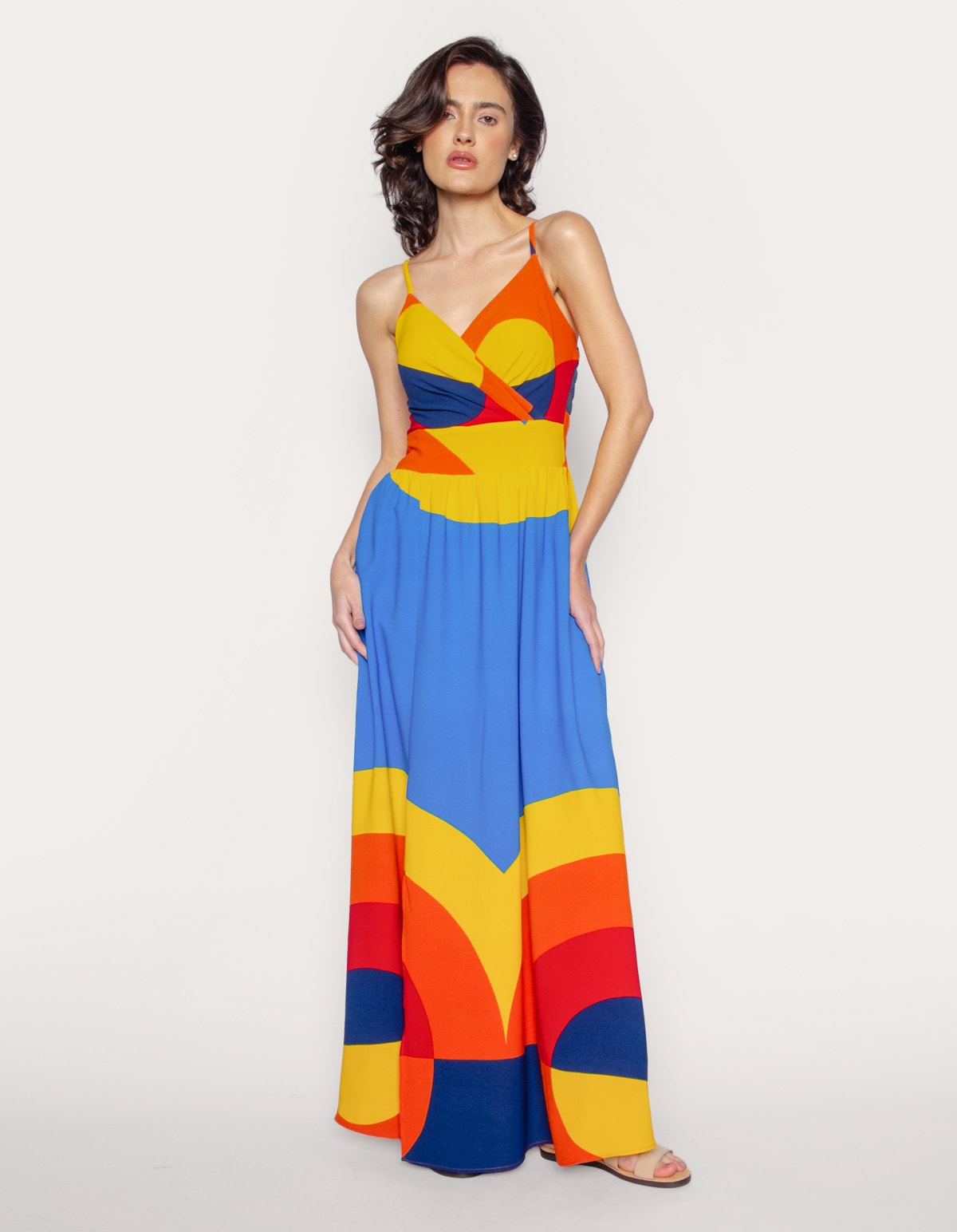 Vestido longo alcinha, decote transpassado e costas em lastex. com um design cuidadosamente elaborado, esse vestido se destaca não apenas pelo visual encantador, mas também pelo caimento impecável que valoriza a silhueta feminina.