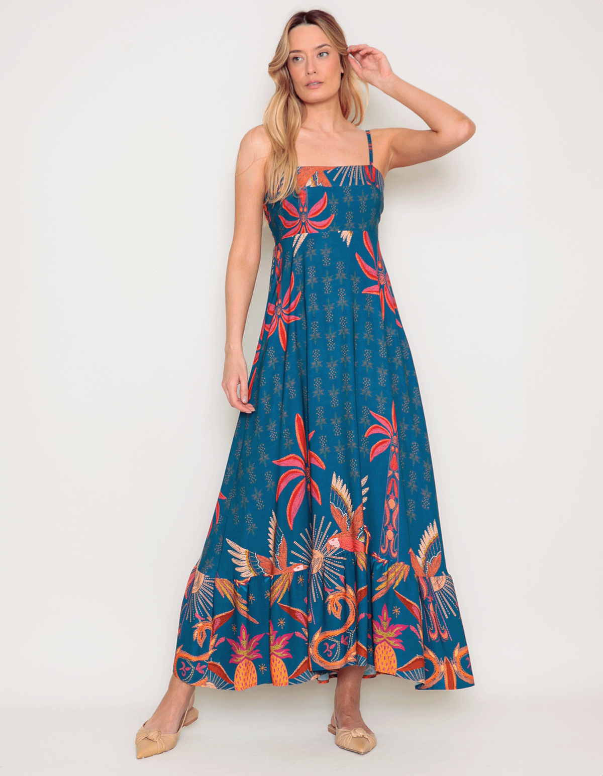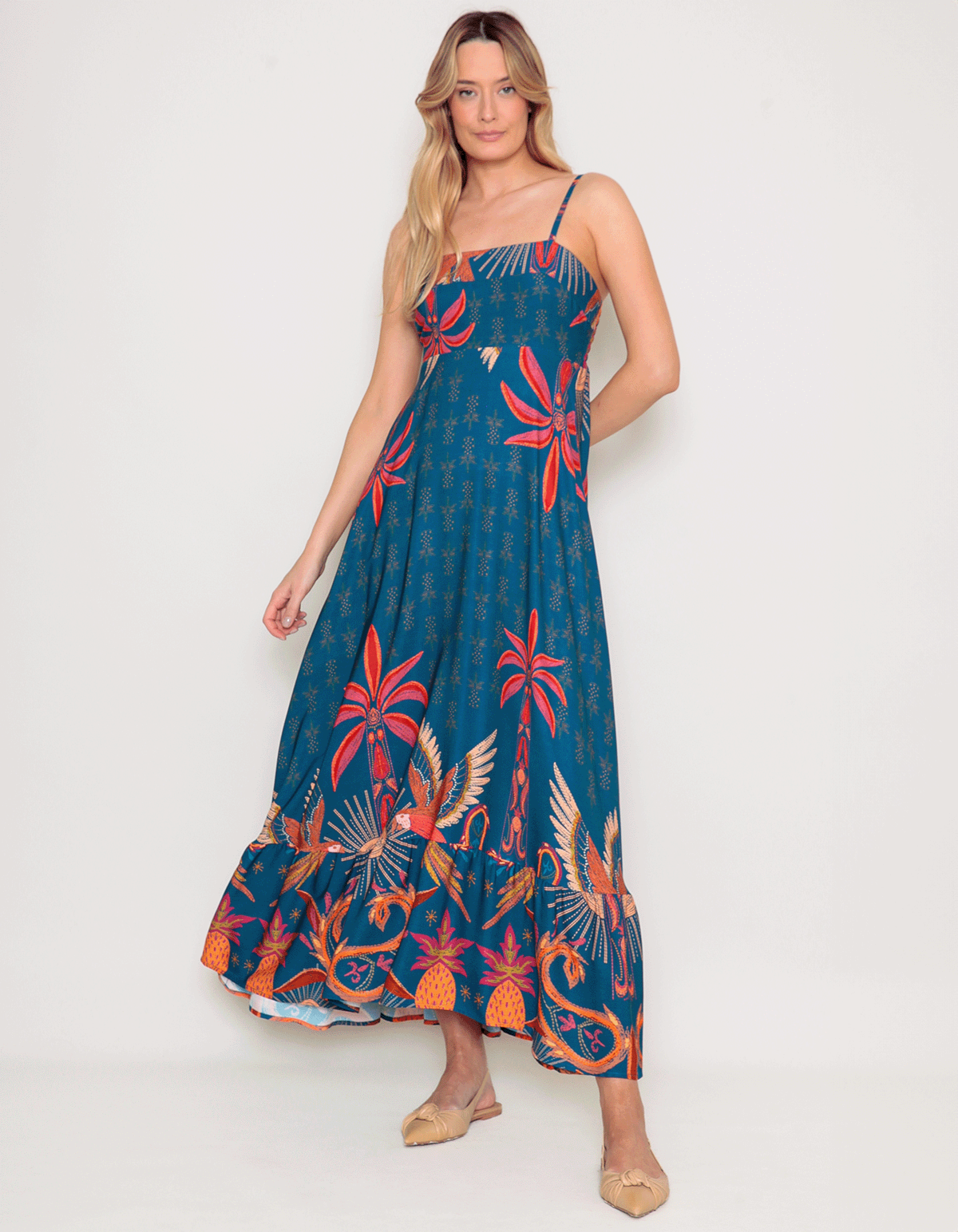 Vestido longo alcinha estampado