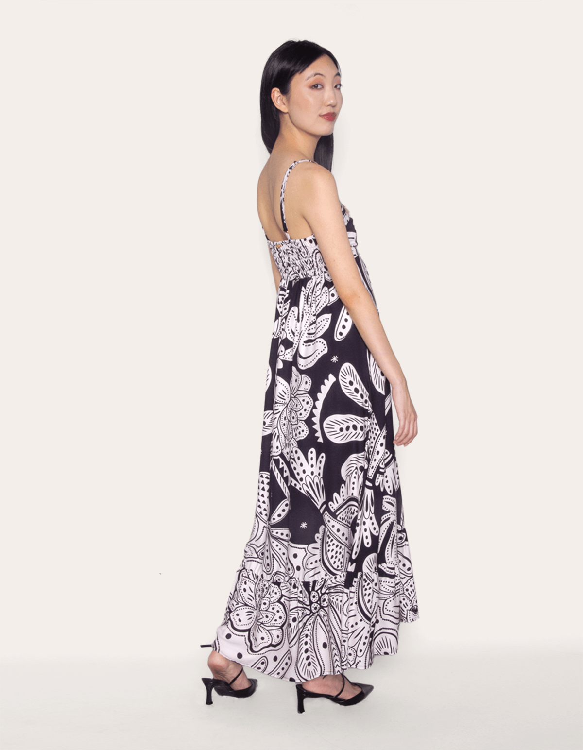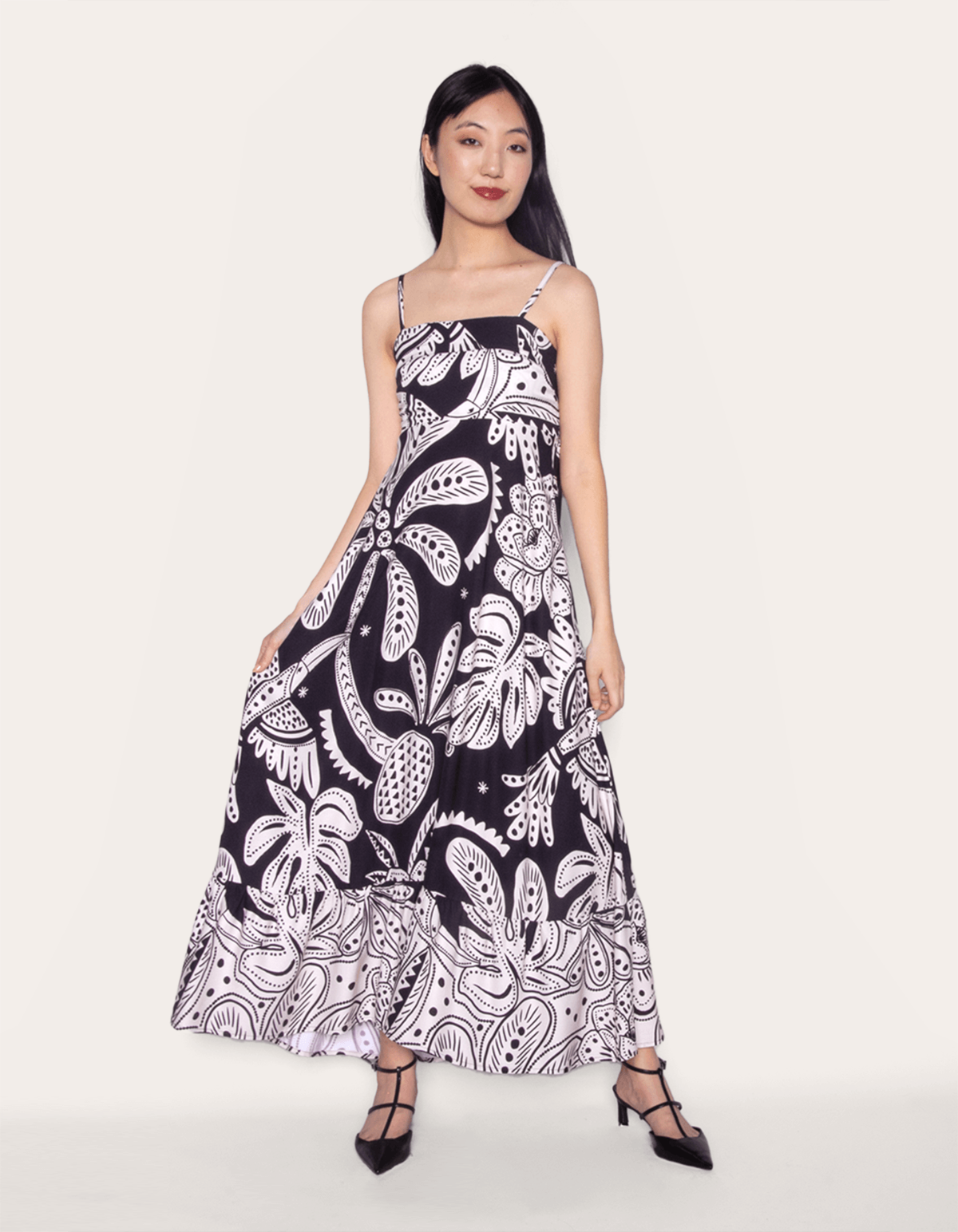 Vestido longo alcinha fina com regulador, decote reto e lastex nas costas. a essência do conforto com uma peça que une praticidade e estilo. sua modelagem versátil torna-o perfeito para diversas ocasiões, proporcionando uma experiência única para quem busca simplicidade com um toque de originalidade.
