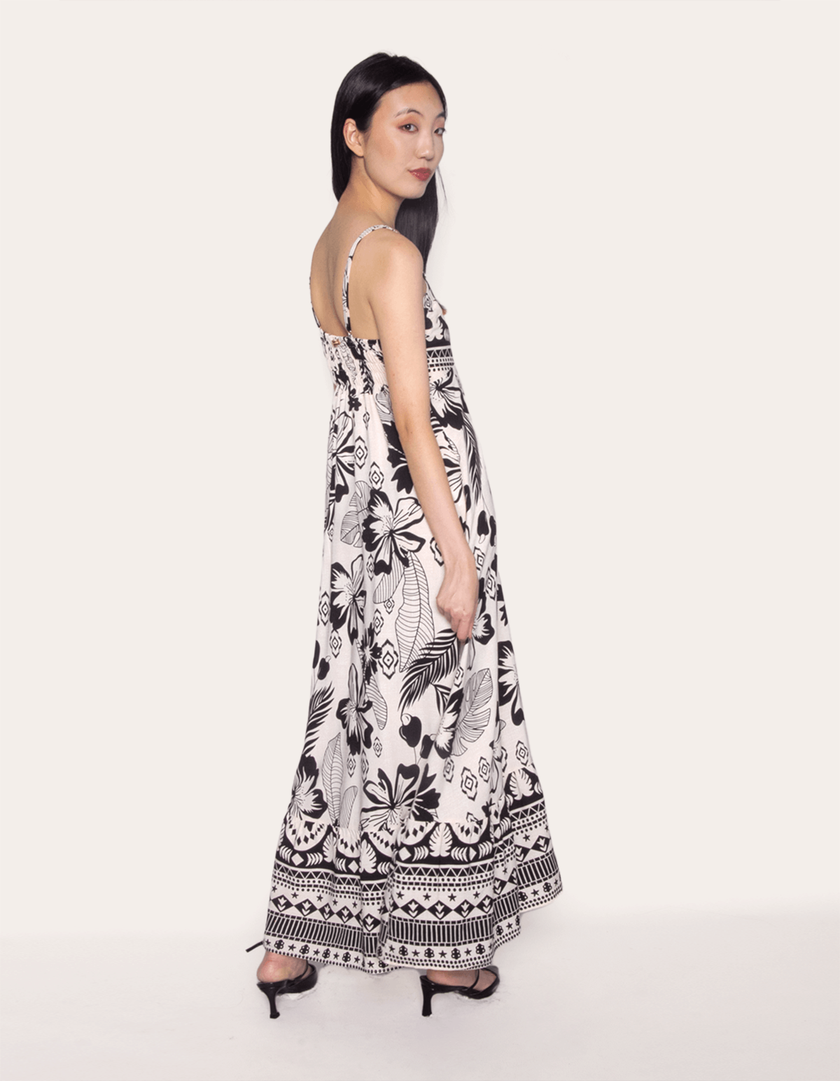 Vestido longo alcinha fina com regulador, decote reto e lastex nas costas. a essência do conforto com uma peça que une praticidade e estilo. sua modelagem versátil torna-o perfeito para diversas ocasiões, proporcionando uma experiência única para quem busca simplicidade com um toque de originalidade.