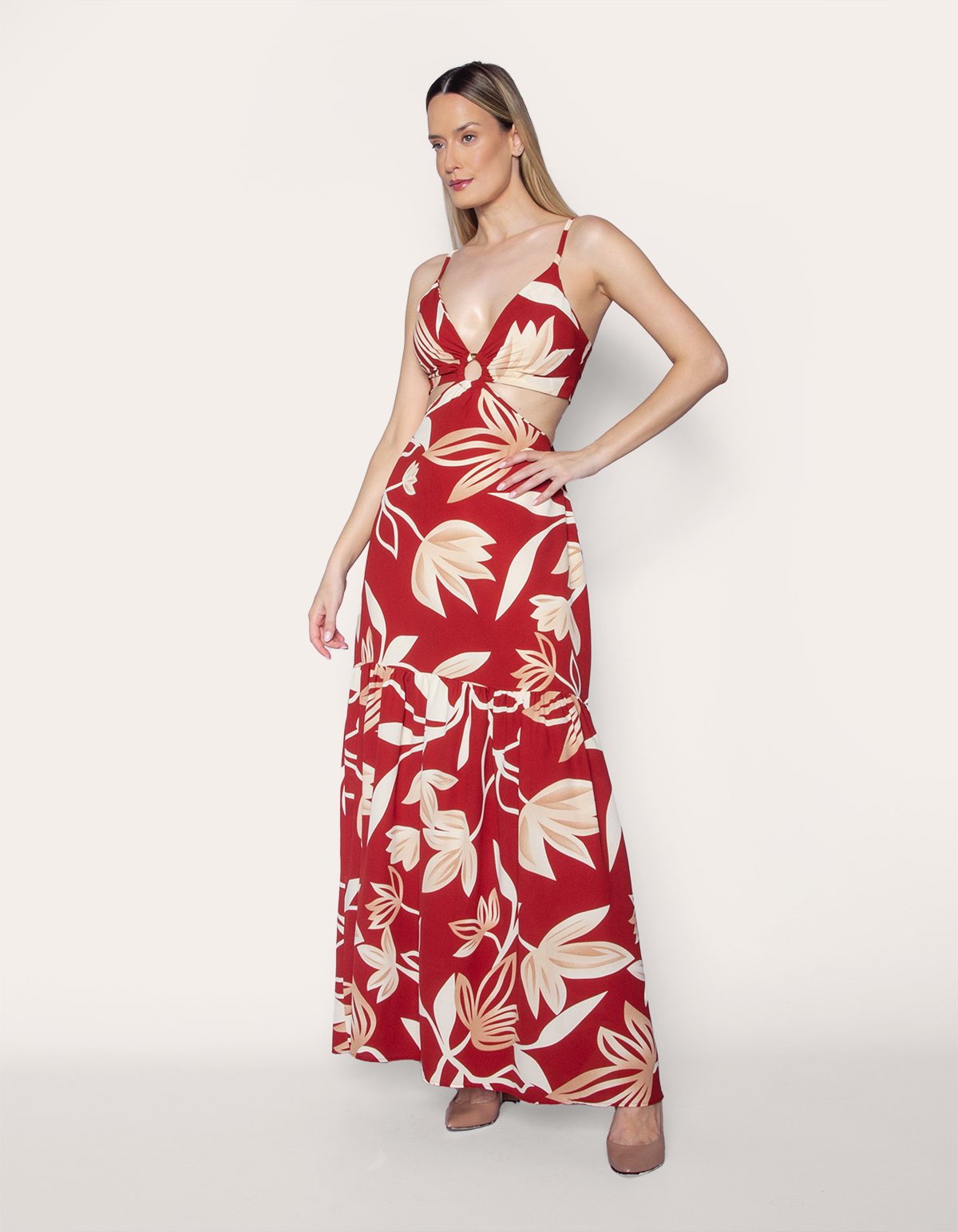 Vestido longo alcinha estampado