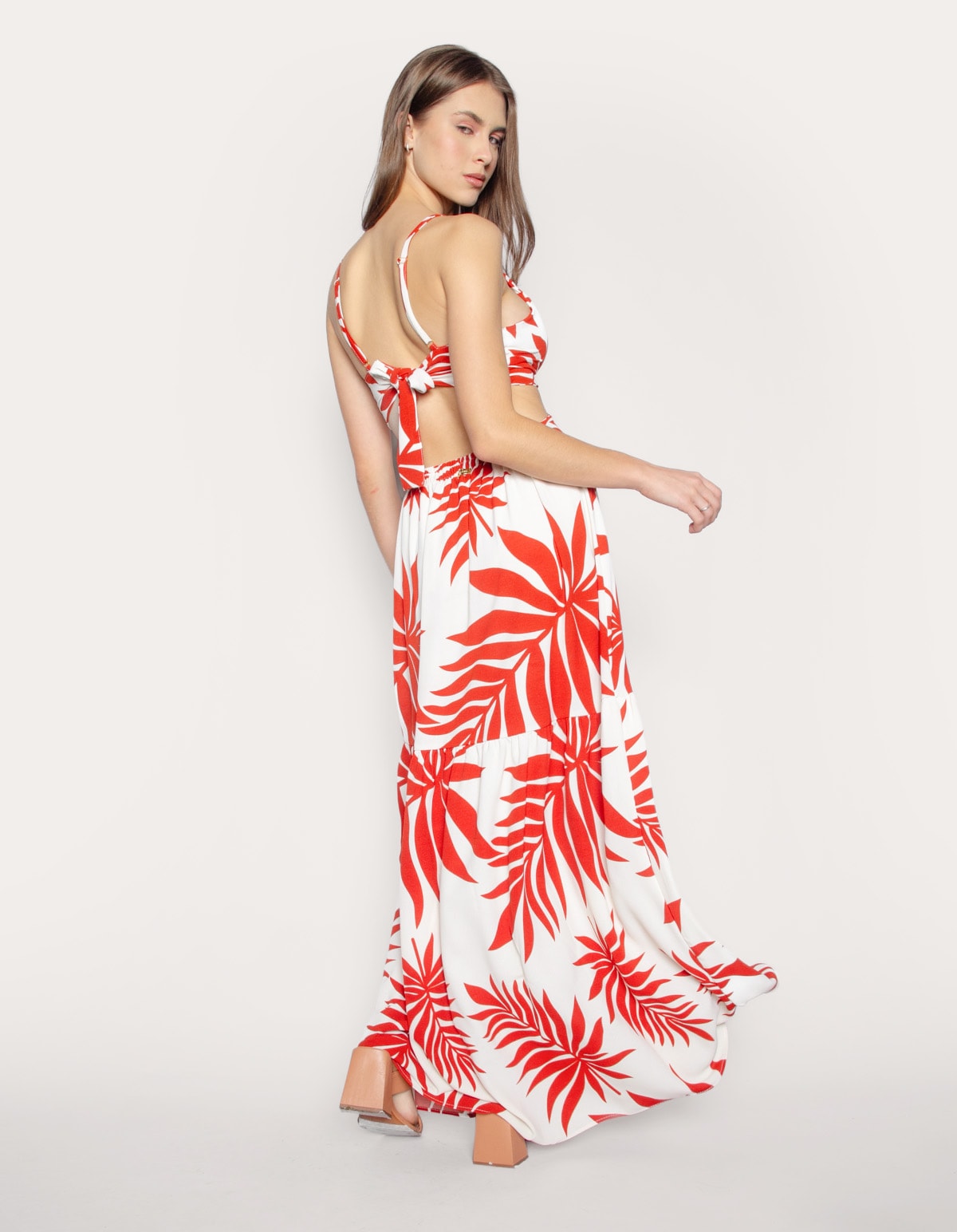 Vestido longo alcinha estampado Folhagem off