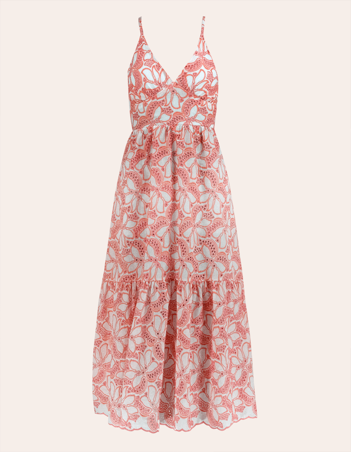 Vestido longo alcinha com bojo, confeccionado em laise bordada colorida. modelo versátil que compõe qualquer look, próprio pra quem tem bom gosto, estilo e gosta de andar na moda.