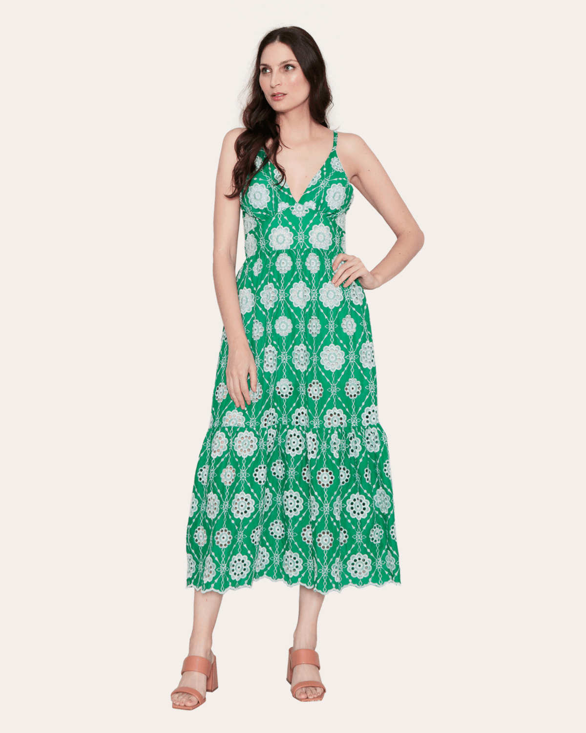 Vestido longo alcinha com bojo, confeccionado em laise bordada colorida. modelo versátil que compõe qualquer look, próprio pra quem tem bom gosto, estilo e gosta de andar na moda.