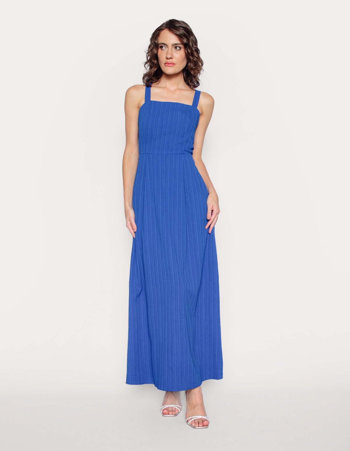 Vestido longo decote quadrado com bojo e alças médias que cruzam nas costas, passando por argolas para amarração, possui elástico na cintura atrás. este vestido é perfeito para aquelas ocasiões especiais em que você deseja se destacar com elegância e estilo.