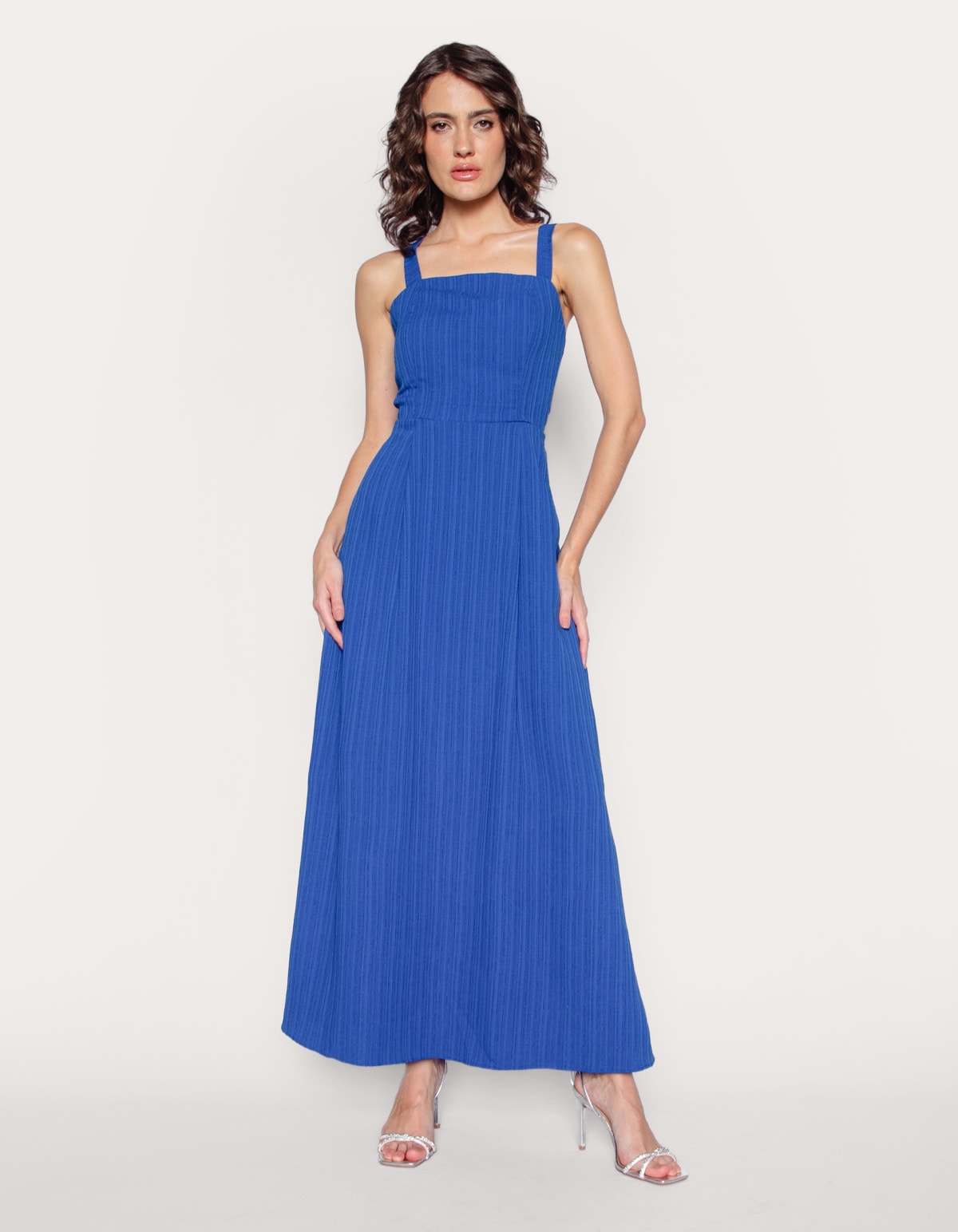 Vestido longo decote quadrado com bojo e alças médias que cruzam nas costas, passando por argolas para amarração, possui elástico na cintura atrás. este vestido é perfeito para aquelas ocasiões especiais em que você deseja se destacar com elegância e estilo.