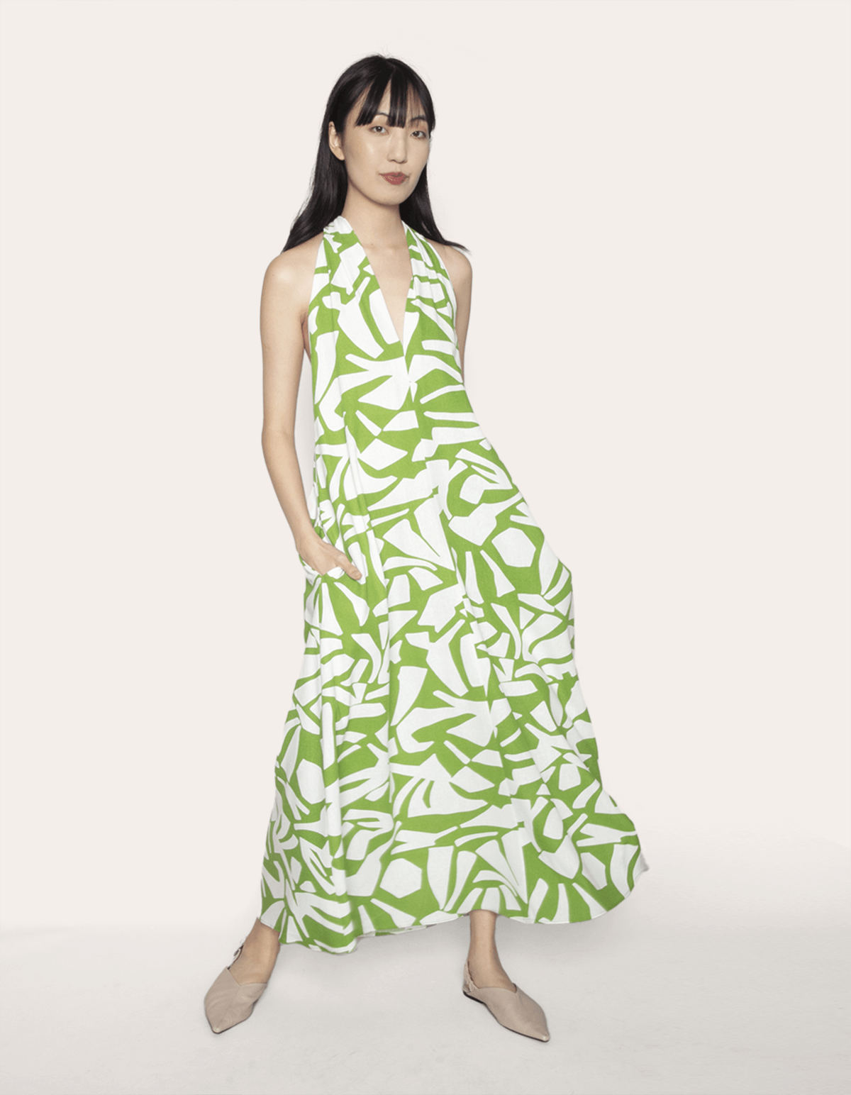 Vestido longo modelagem ampla, cavado, decote v e com 2 bolsos nas laterais. descubra a sofisticação atemporal do nosso vestido de viscolinho, perfeito para quem busca um visual elegante e prático para o dia a dia ou ocasiões especiais.