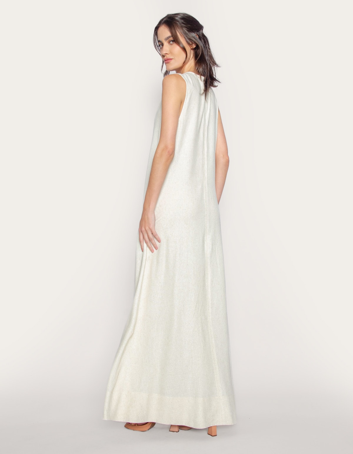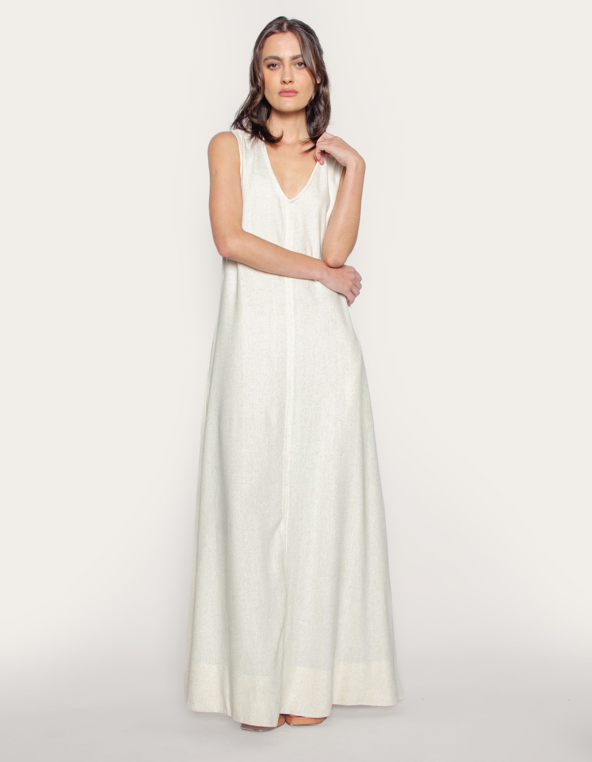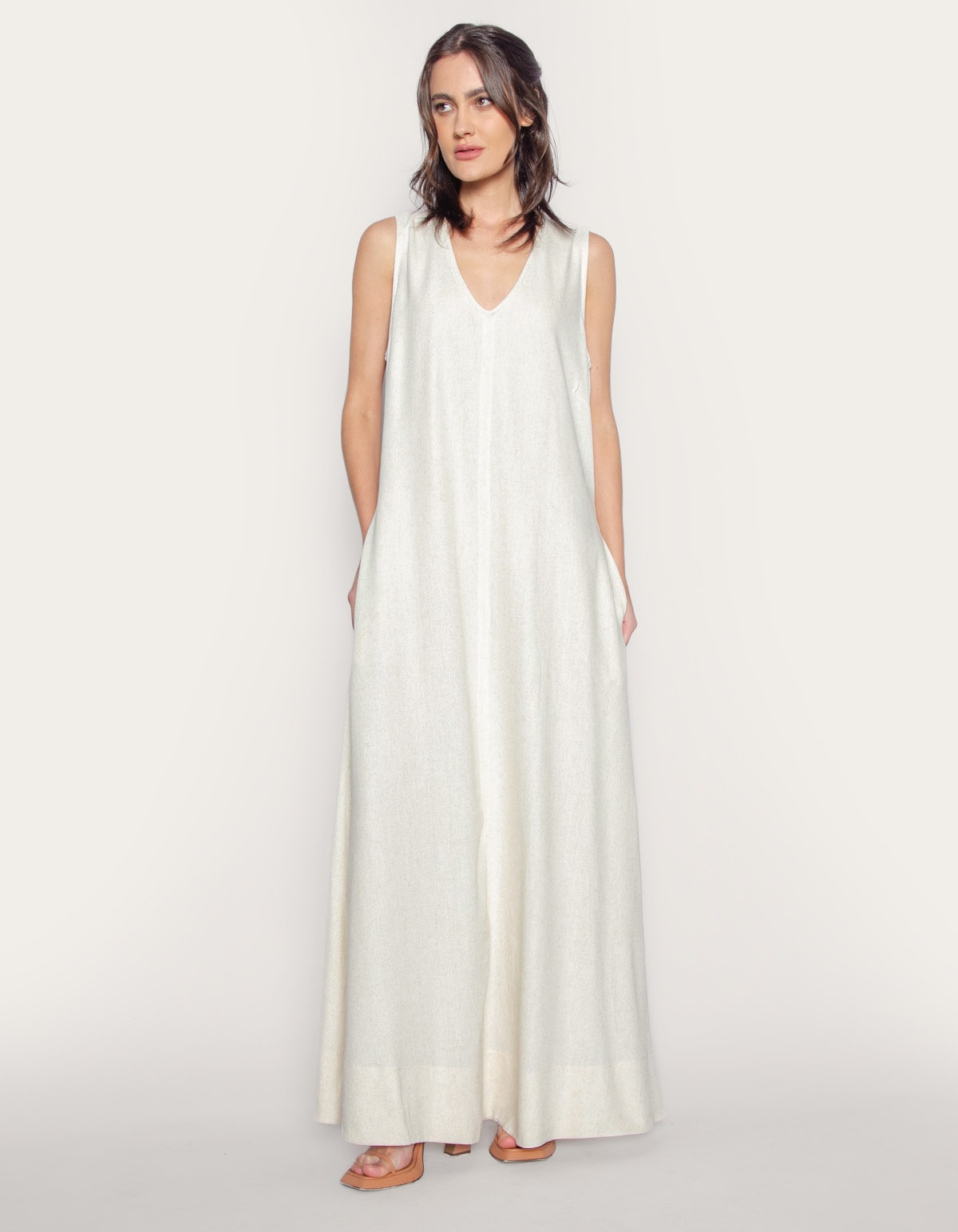 Vestido longo amplo linho blend
