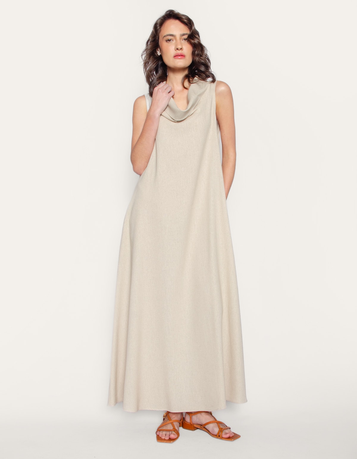 Vestido longo amplo linho blend