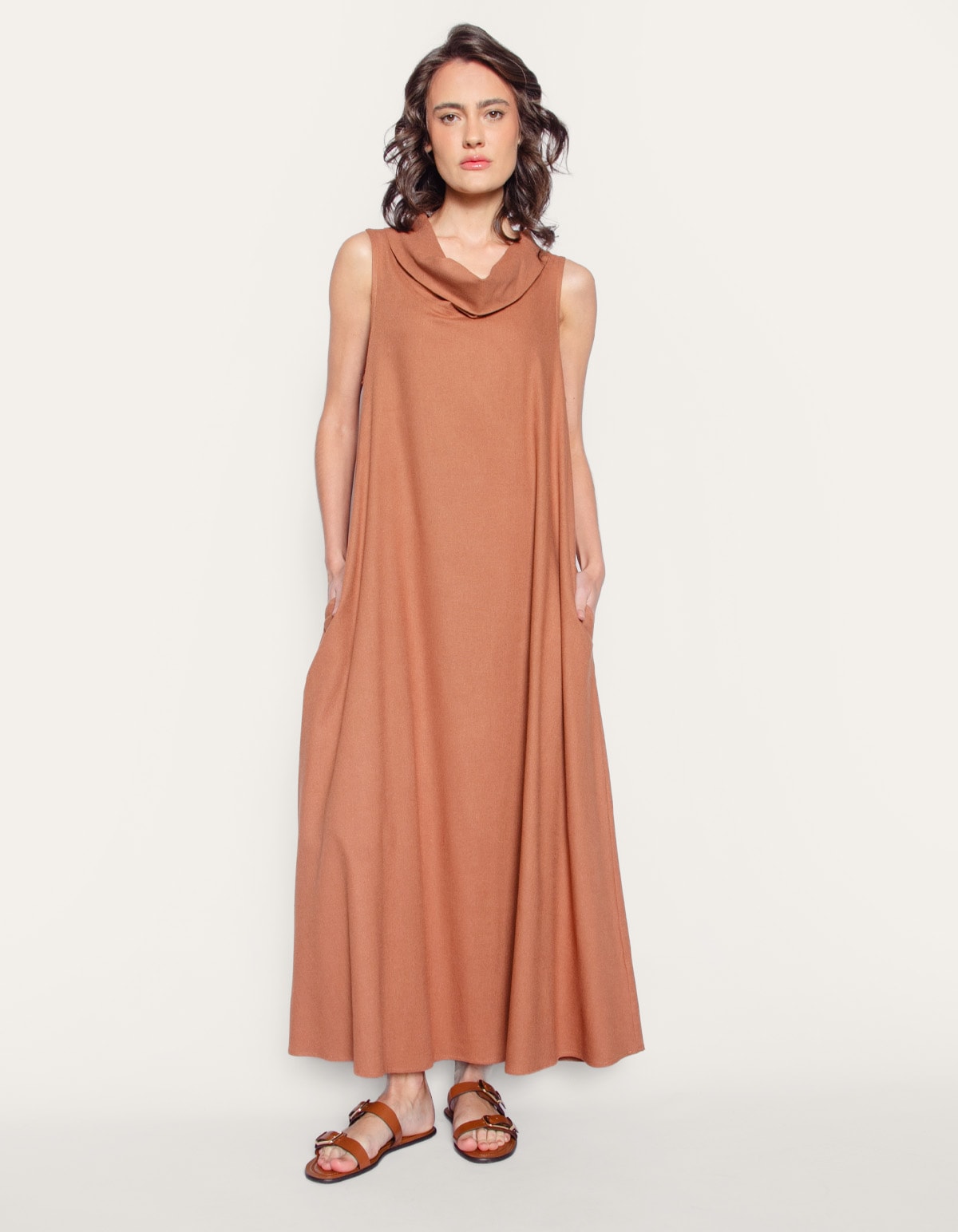 Vestido longo amplo linho blend
