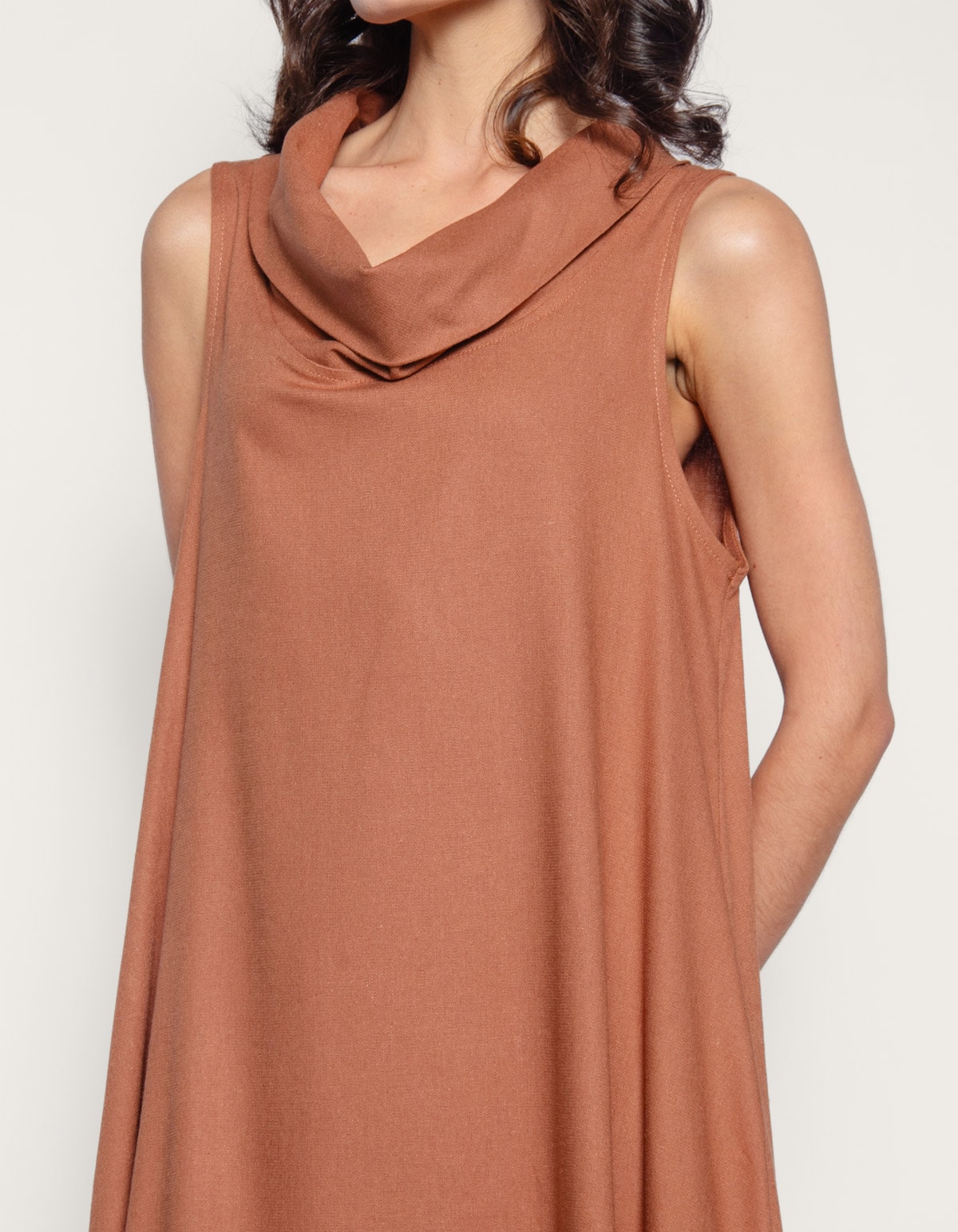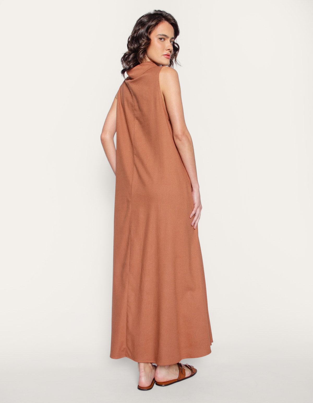 Vestido longo cavado gola linho blend