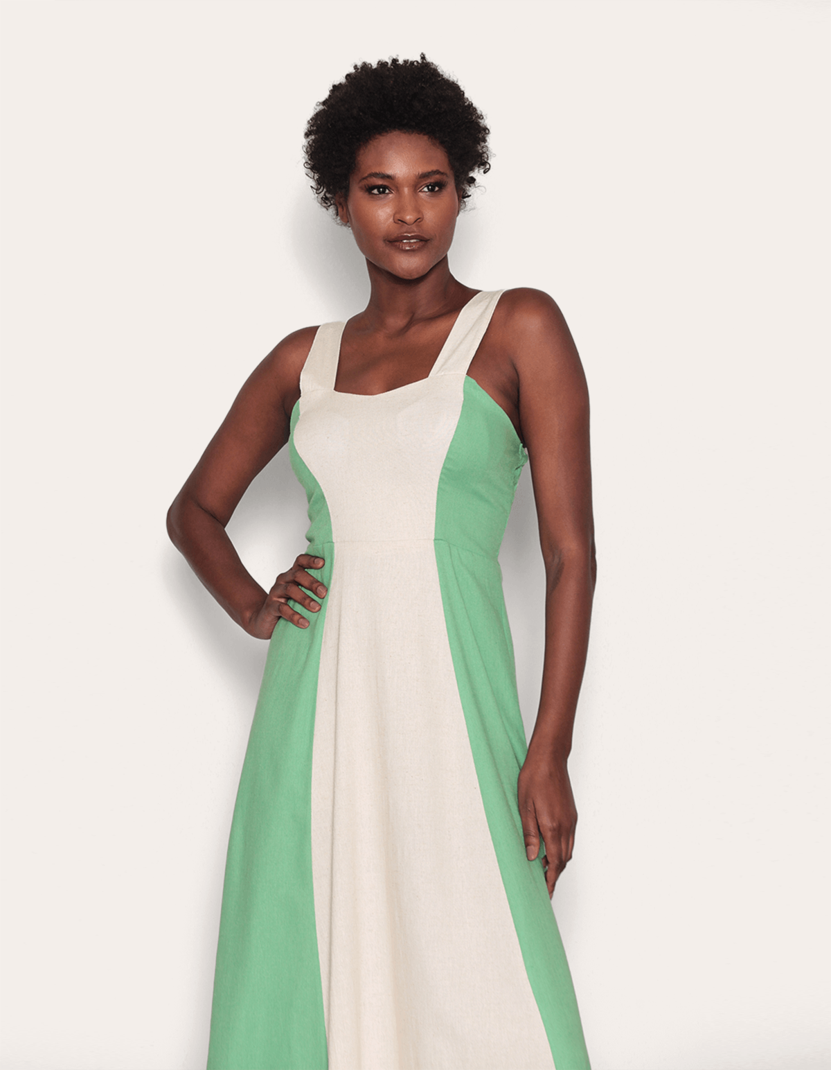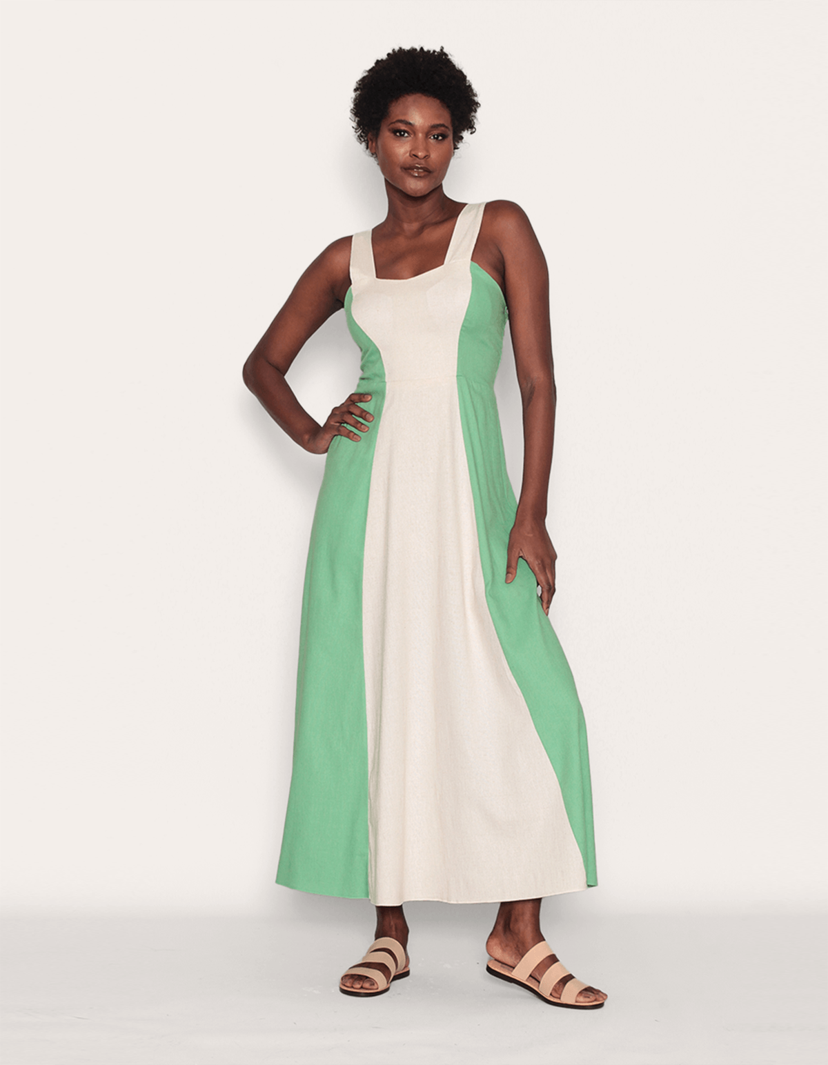 Vestido longo bicolor