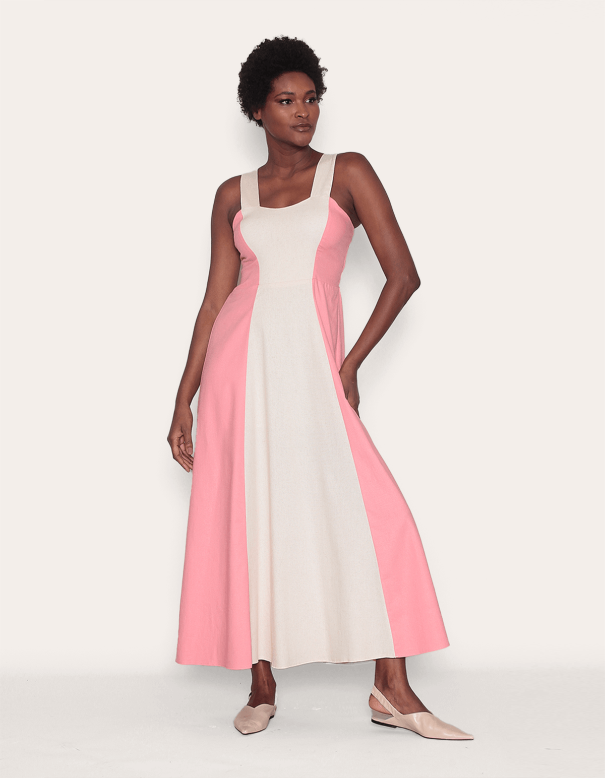 Vestido longo bicolor