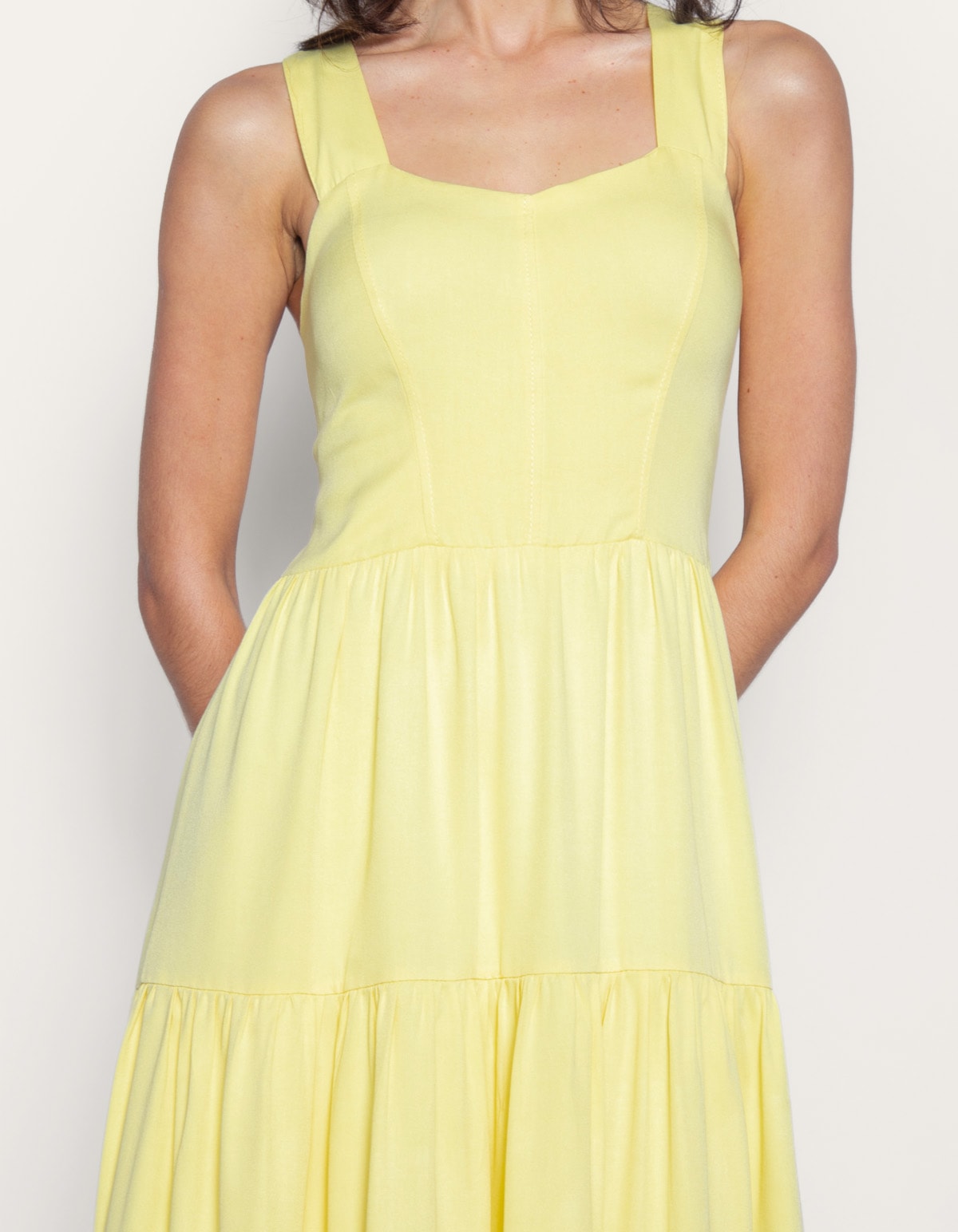 Composição: 95% viscose 5% linho / forro: 100% poliester